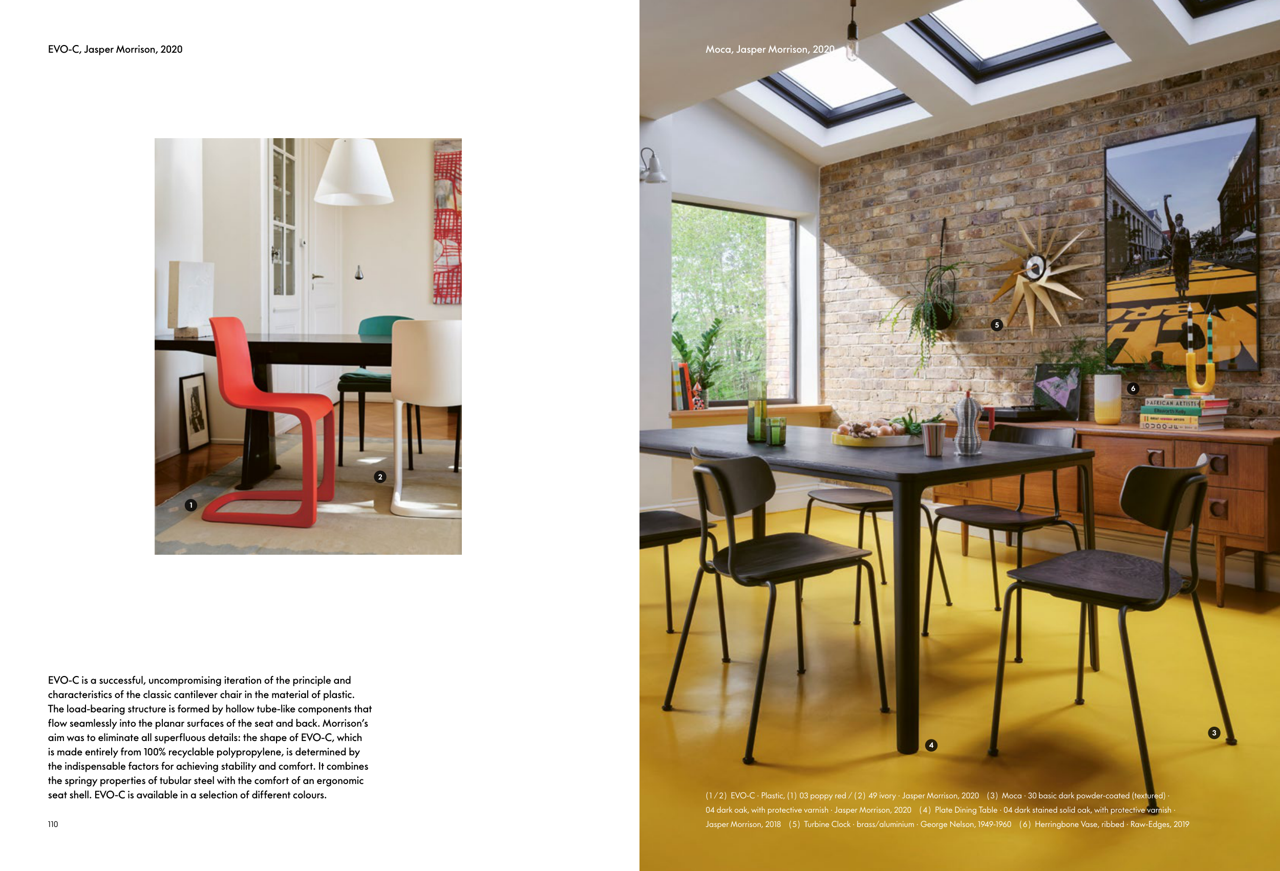( 1 / 2 ) EVO-C · Plastic , ( 1 ) 03 poppy red / ( 2 ) 49 ivory · Jasper Morrison, 2020 ( 3 ) Moca · 30 basic dark powder-coated (textured) ·