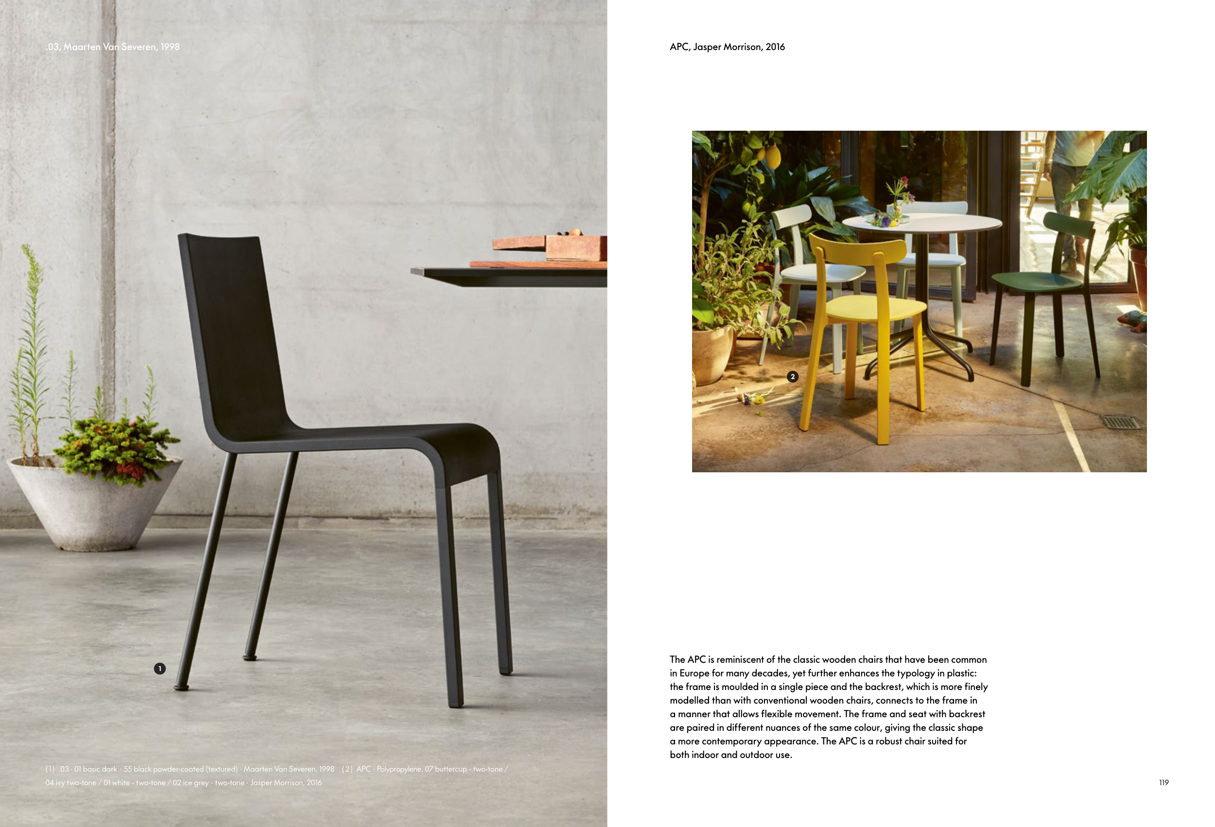 ( 1 ) .03 · 01 basic dark · 55 black powder-coated (textured) · Maarten Van Severen, 1998 ( 2 ) APC · Polypropylene, 07 buttercup - two-tone /