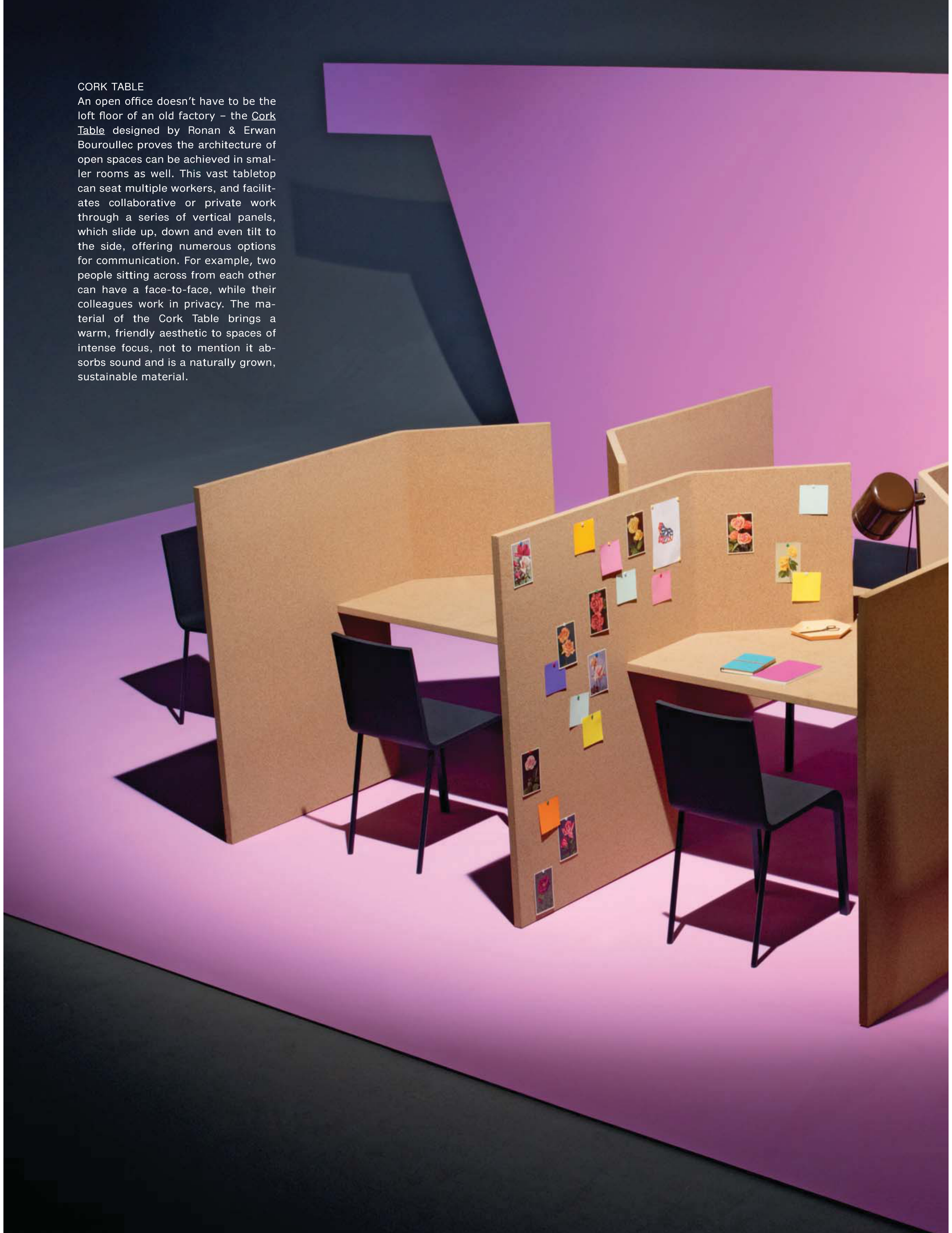 terial of the Cork Table brings a