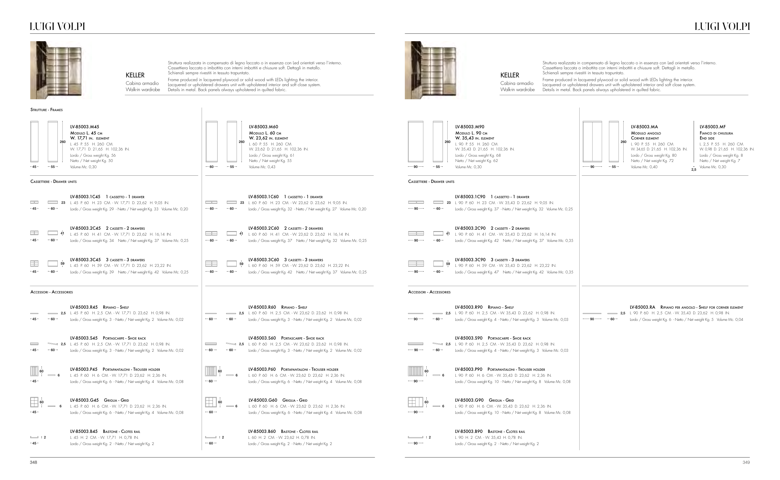 Lordo / Gross weight Kg. 34 Netto / Net weight Kg. 37 Volume Mc. 0,25