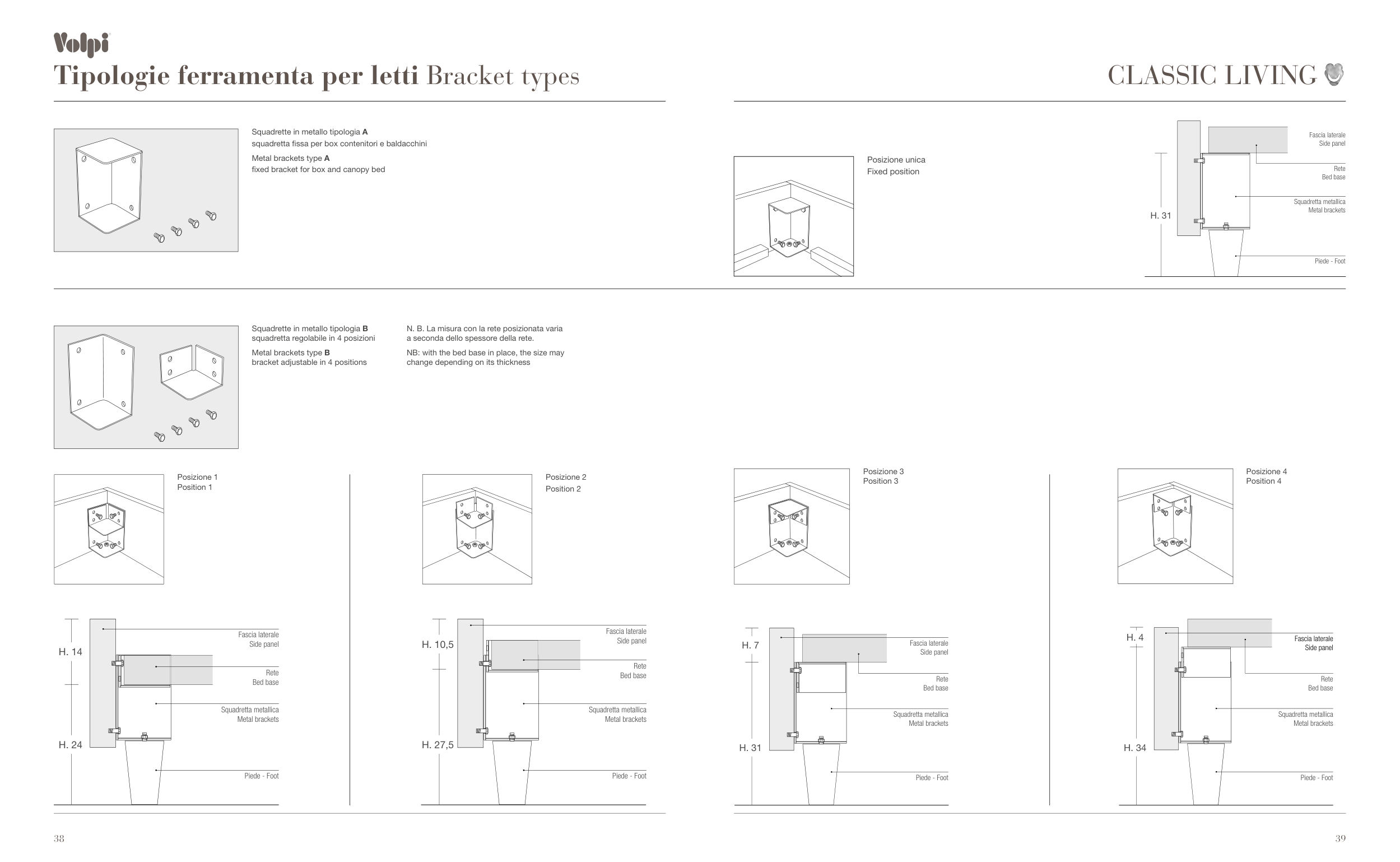 Tipologie ferramenta per letti Bracket types