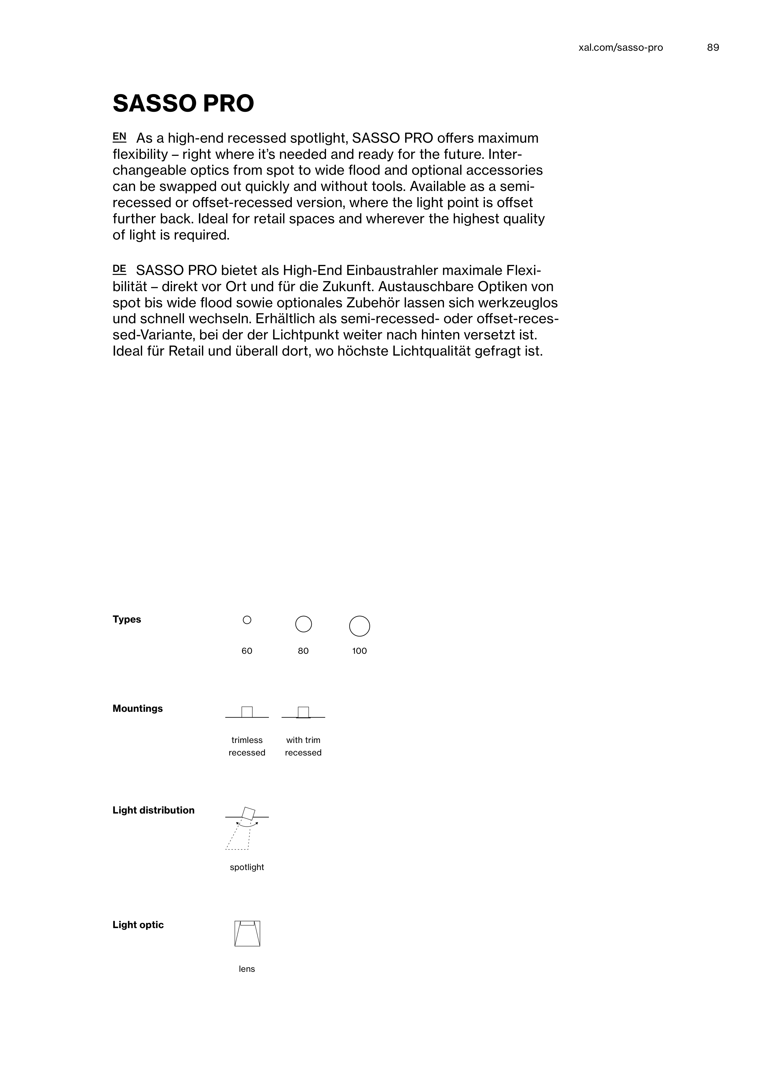 EN As a highend recessed spotlight, SASSO PRO offers maximum