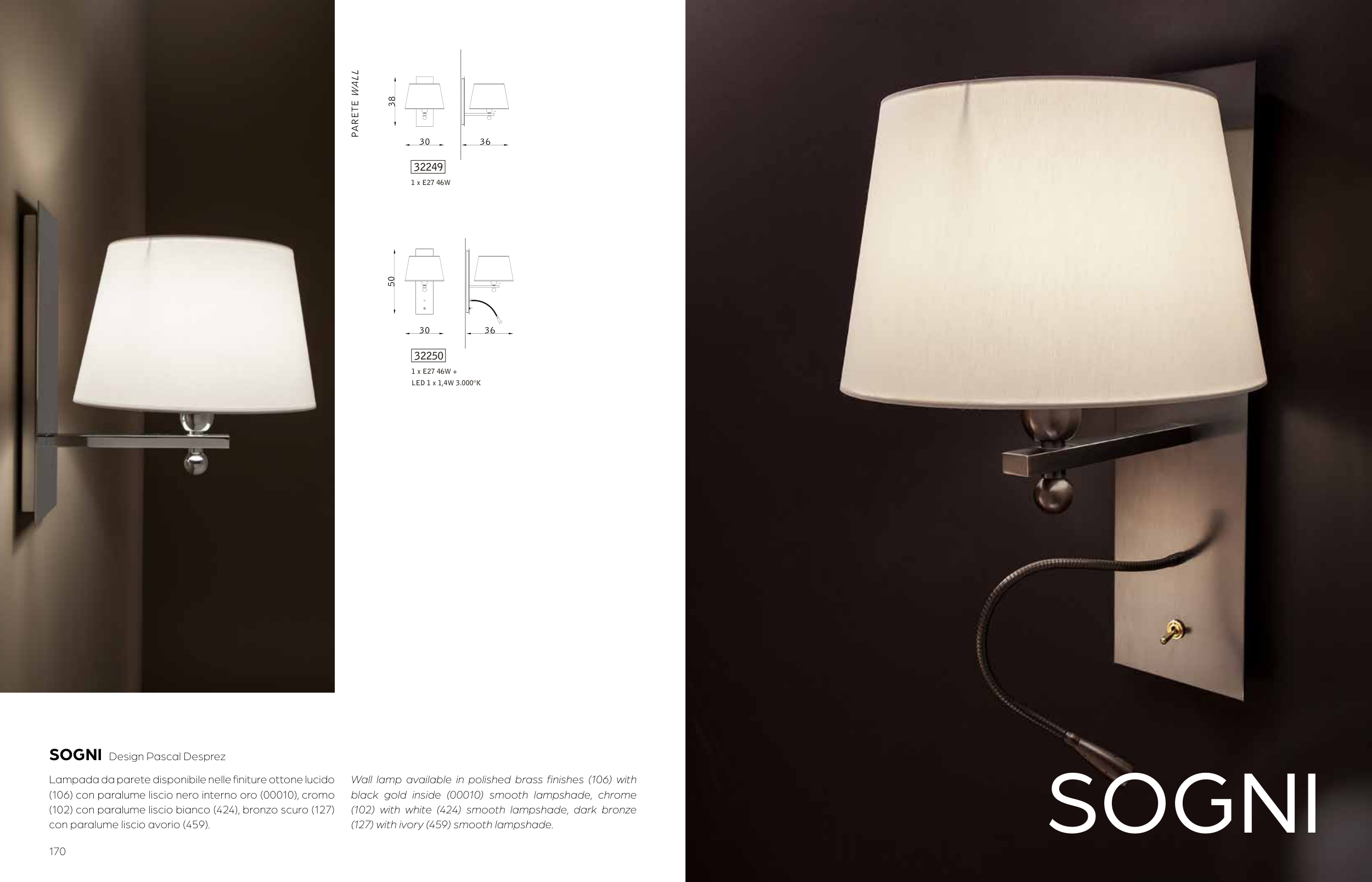 Lampada da parete disponibile nelle finiture ottone lucido