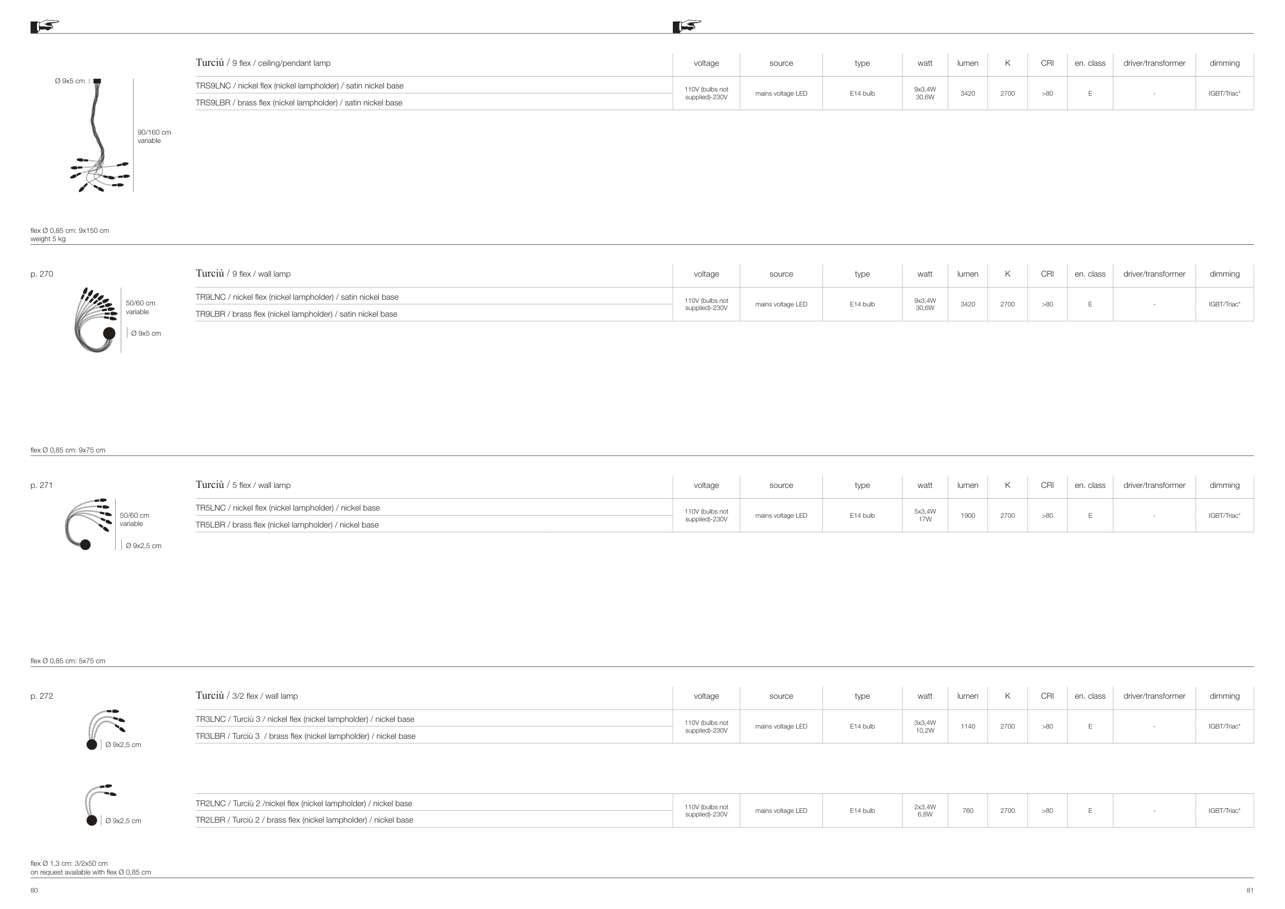 TR2LNC / Turciù 2 /nickel flex (nickel lampholder) / nickel base