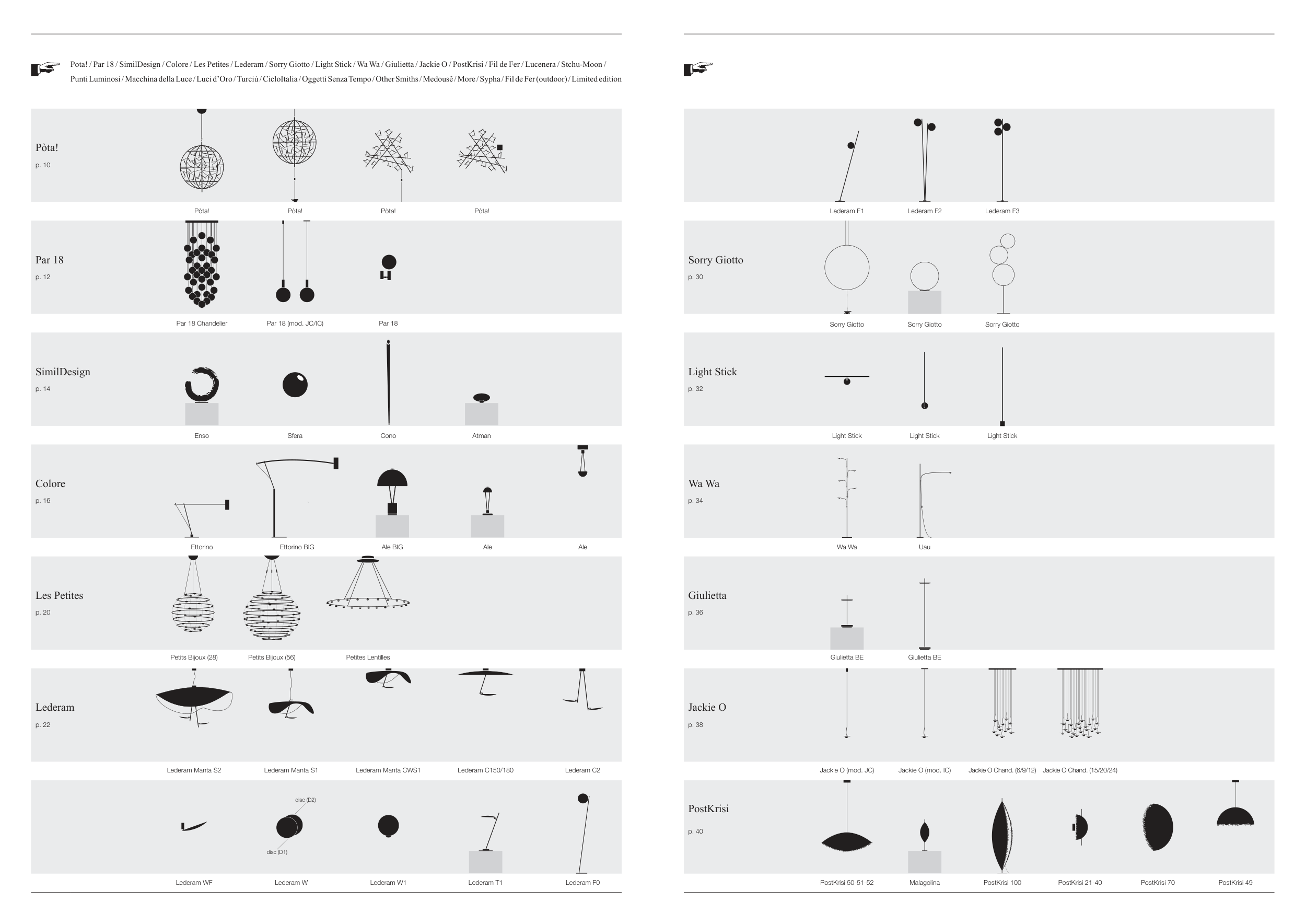 Punti Luminosi / Macchina della Luce / Luci d’Oro / Turciù / CicloItalia / Oggetti Senza Tempo / Other Smiths / Medousê / More / Sypha / Fil de Fer (outdoor) / Limited edition