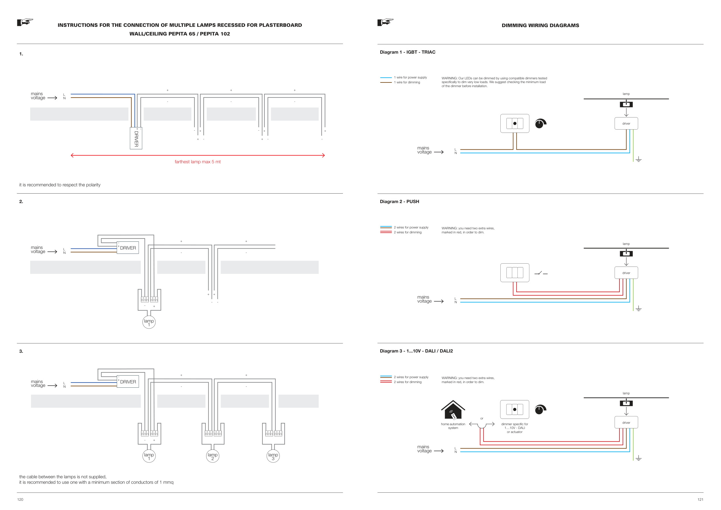 INSTRUCTIONS FOR THE CONNECTION OF MULTIPLE LAMPS RECESSED FOR PLASTERBOARD