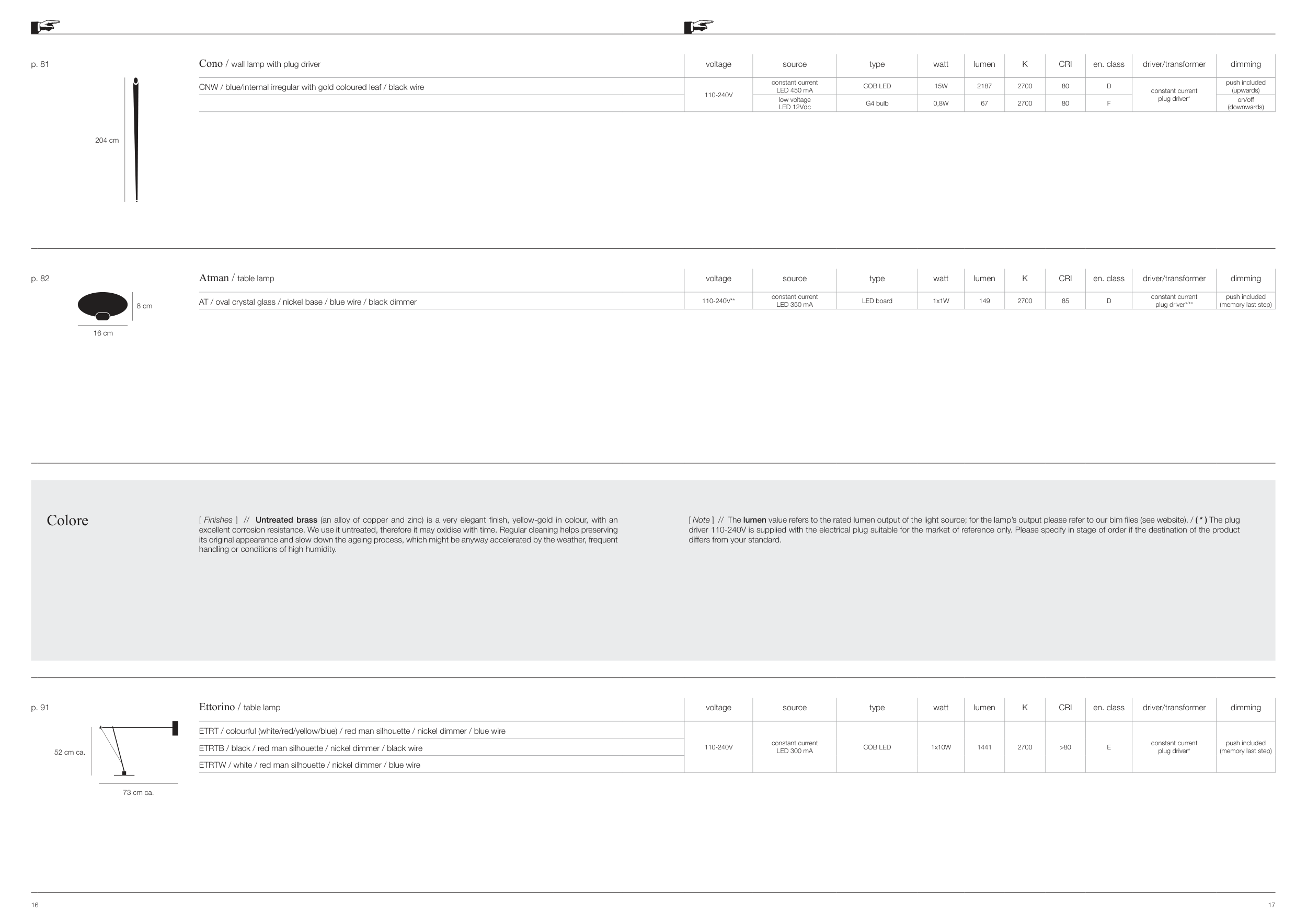 [ Note ] // The lumen value refers to the rated lumen output of the light source; for the lamp’s output please refer to our bim files (see website). / ( * ) The plug