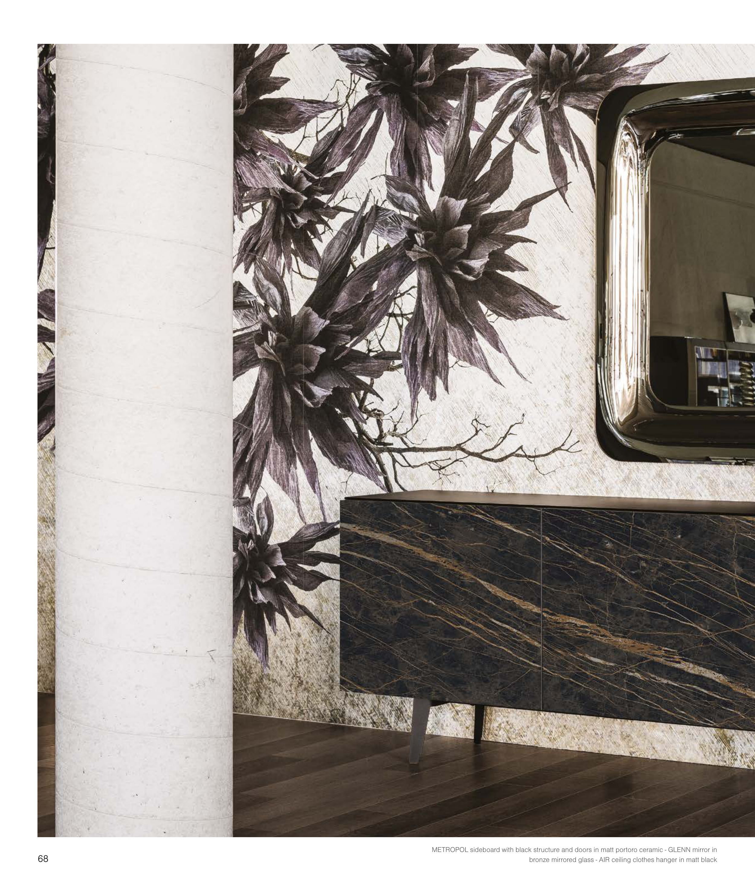 METROPOL sideboard with black structure and doors in matt portoro ceramic - GLENN mirror in
