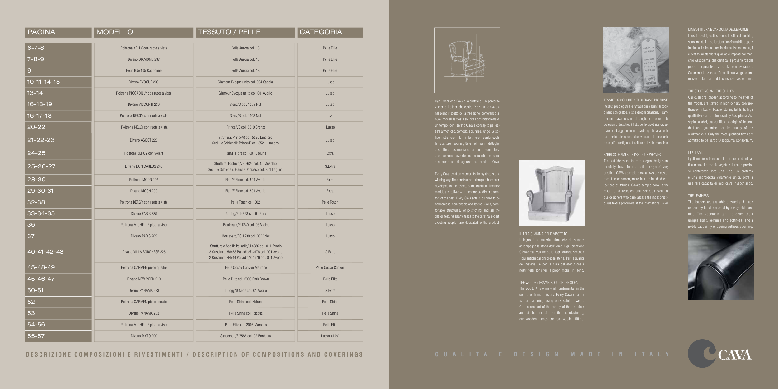 D E S C R I Z I O N E C O M P O S I Z I O N I E R I V E S T I M E N T I / D E S C R I P T I O N O F C O M P O S I T I O N S A N D C O V E R I N G S