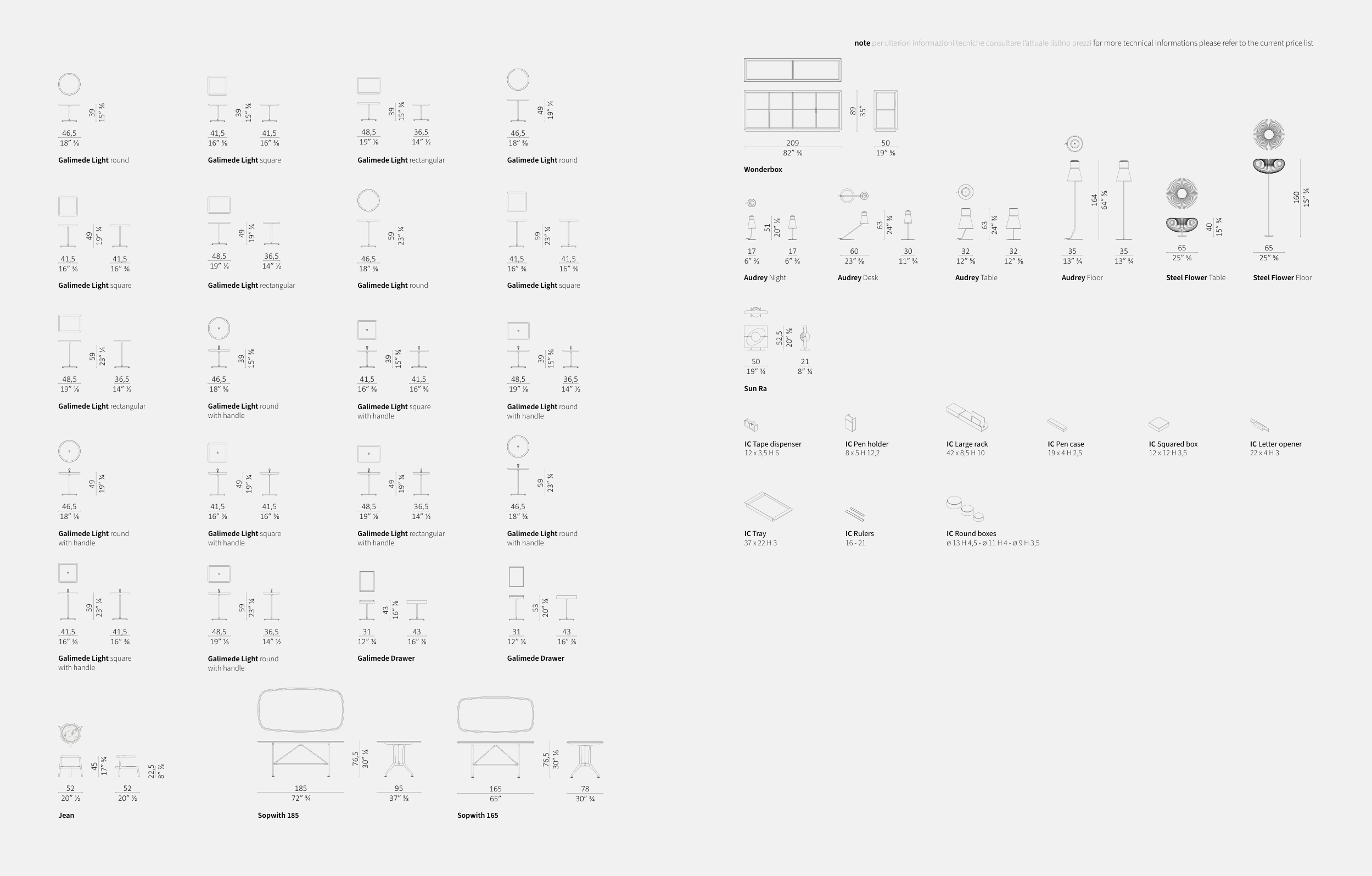 note per ulteriori informazioni tecniche consultare l’attuale listino prezzi for more technical informations please refer to the current price list