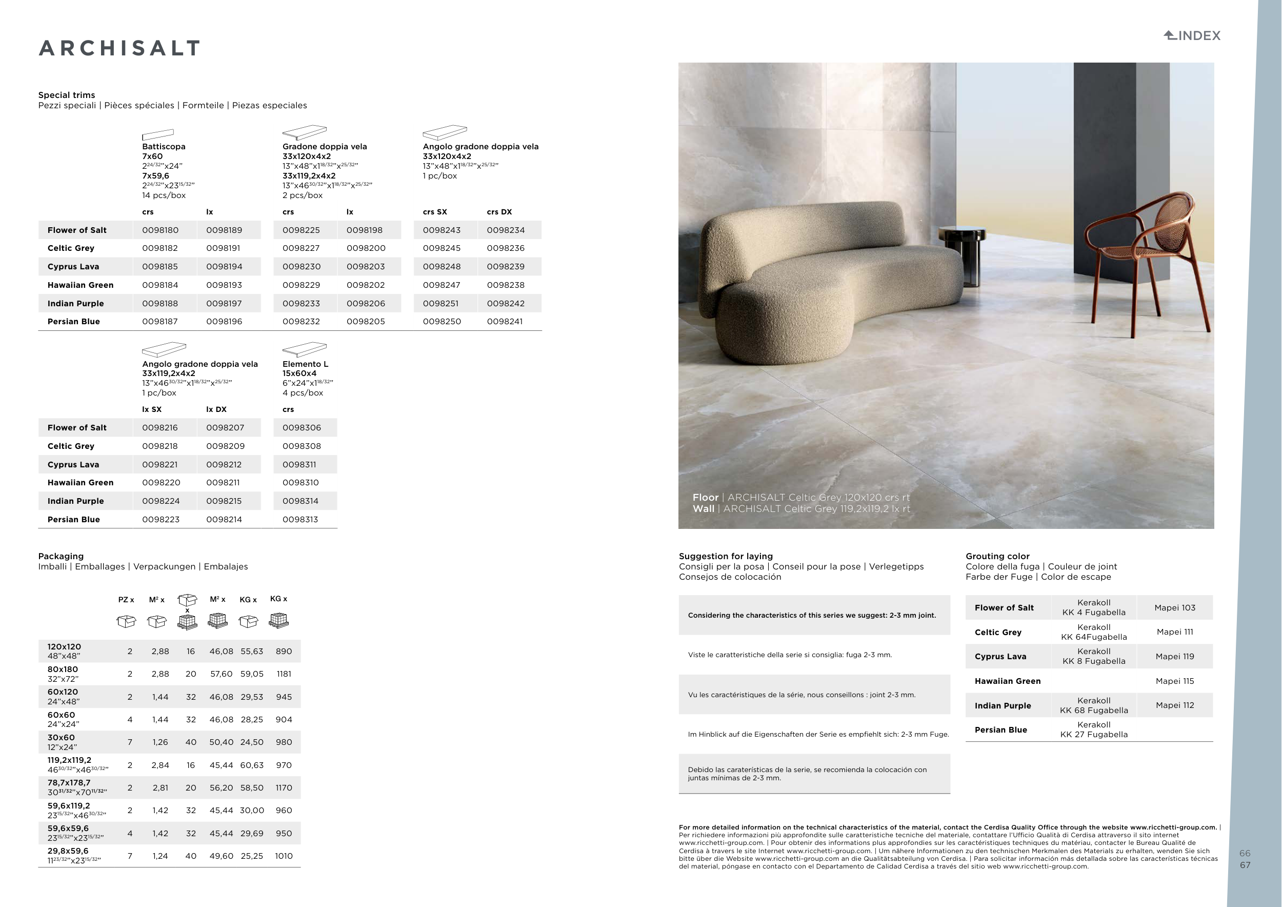 For more detailed information on the technical characteristics of the material, contact the Cerdisa Quality Office through the website www.ricchetti-group.com. |