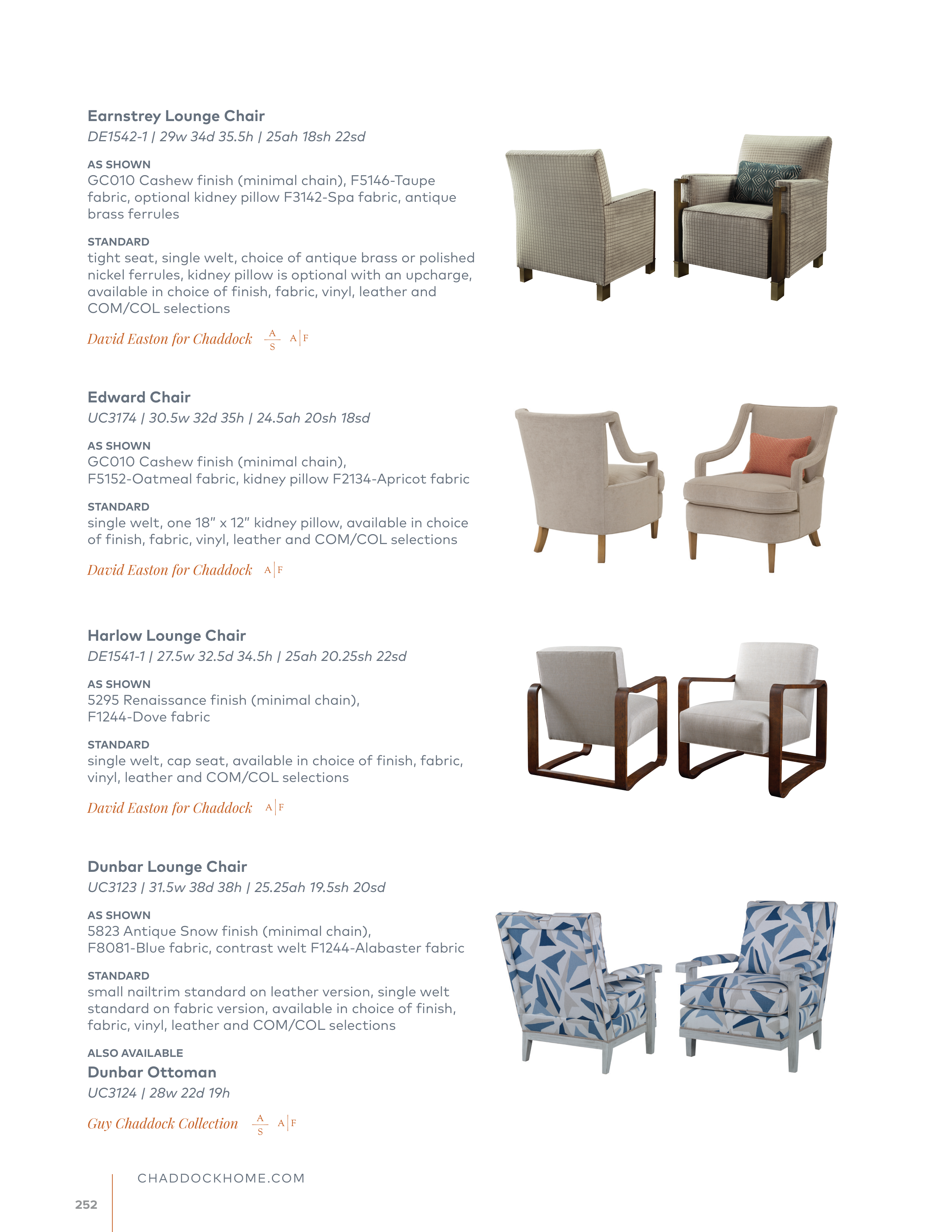 available in choice of finish, fabric, vinyl, leather and