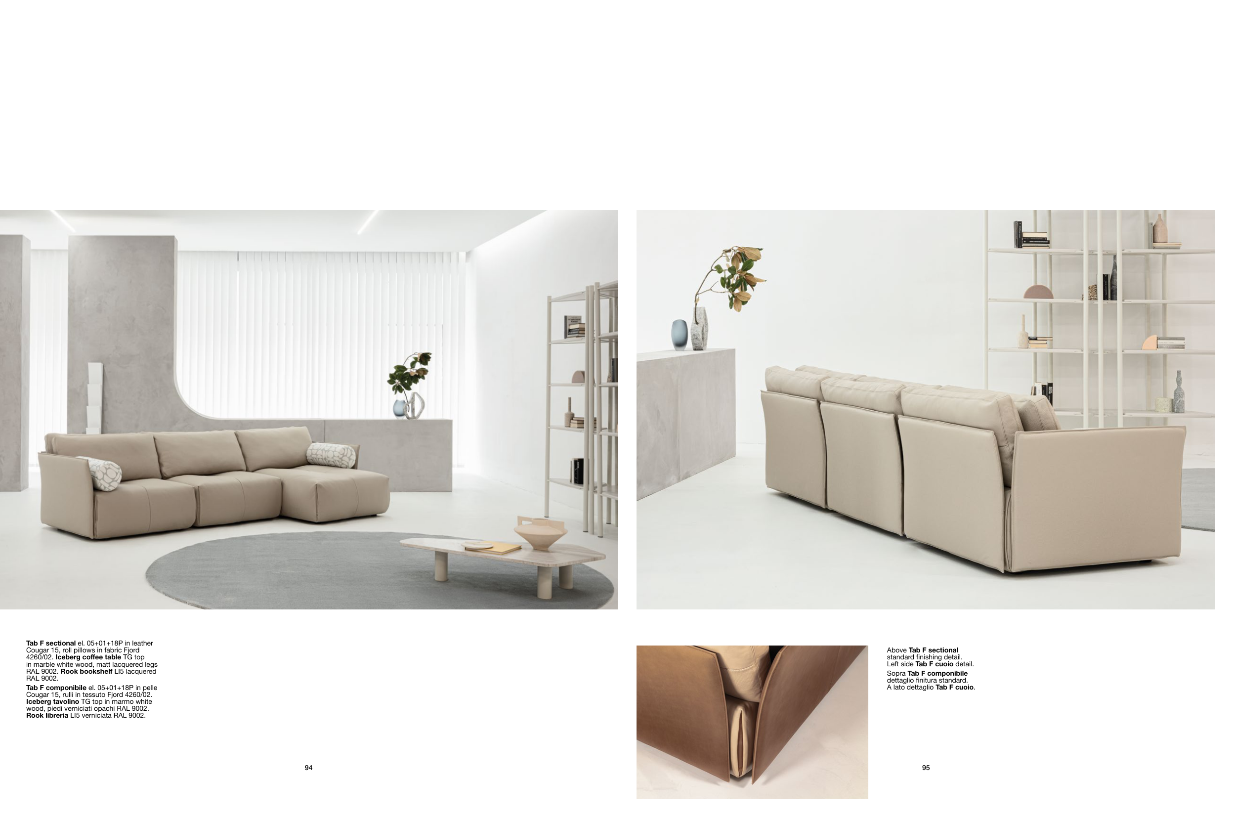 A lato dettaglio Tab F cuoio.