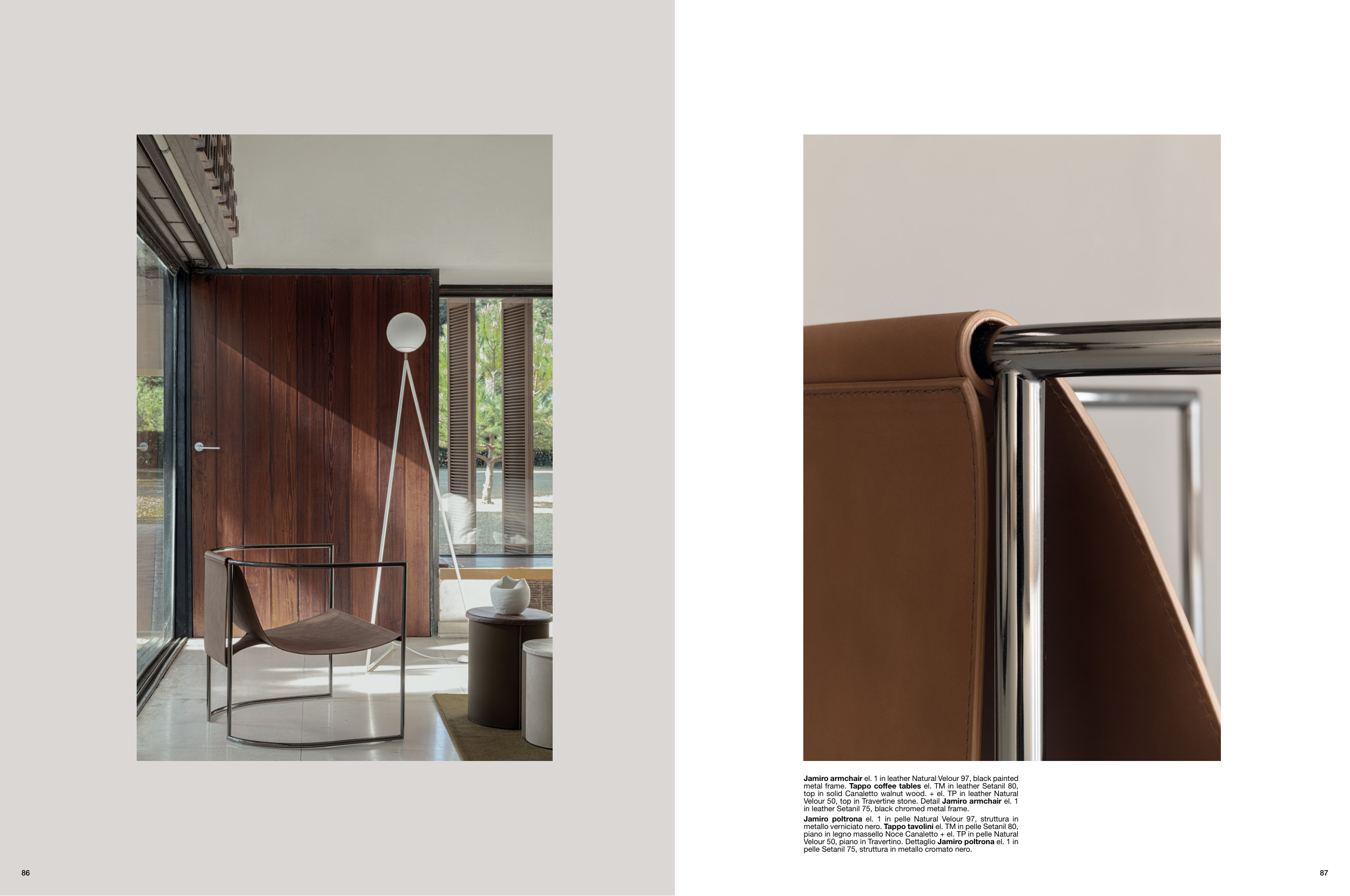 Velour 50, piano in Travertino. Dettaglio Jamiro poltrona el. 1 in