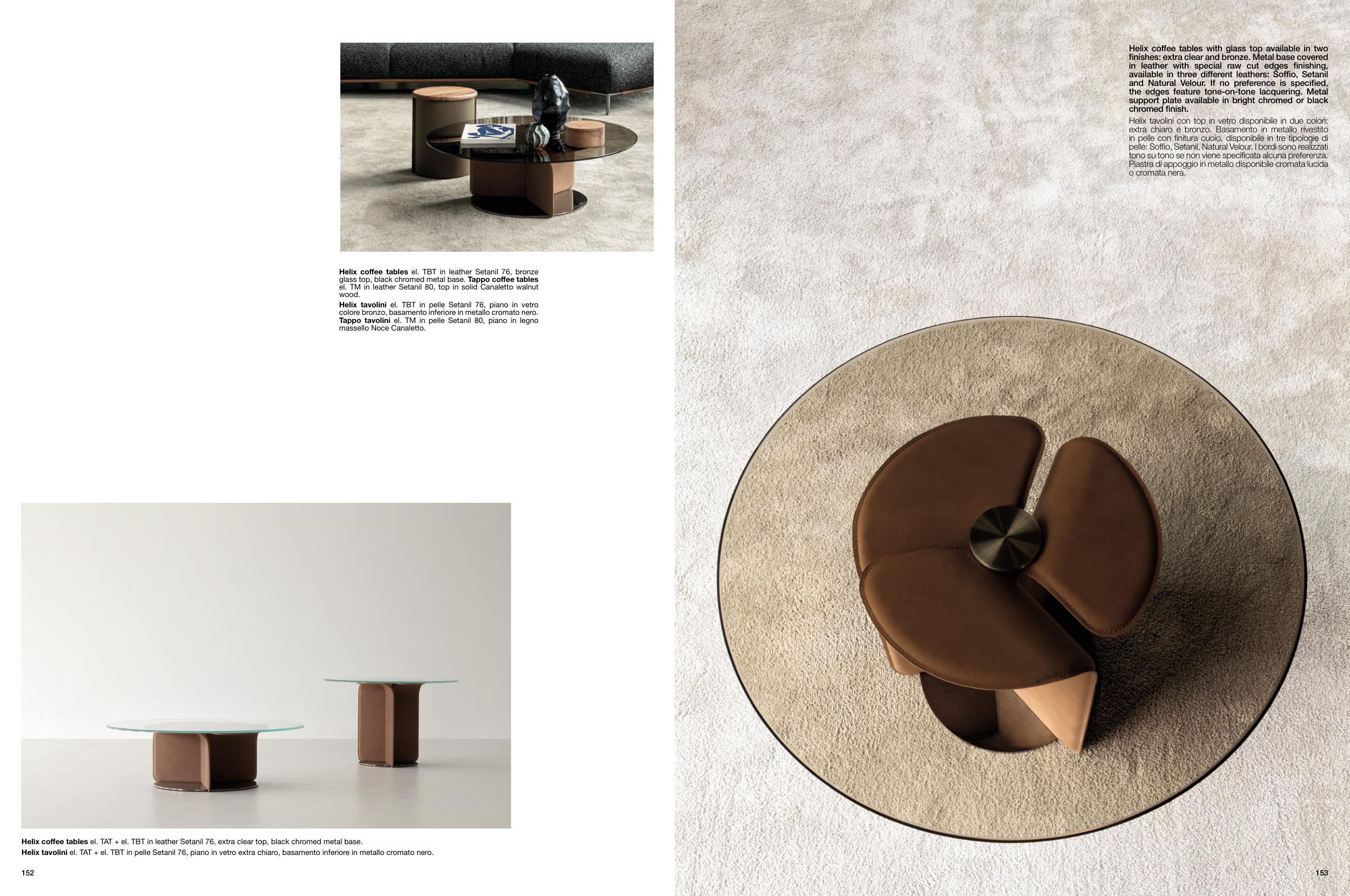 Helix coffee tables el. TBT in leather Setanil 76, bronze