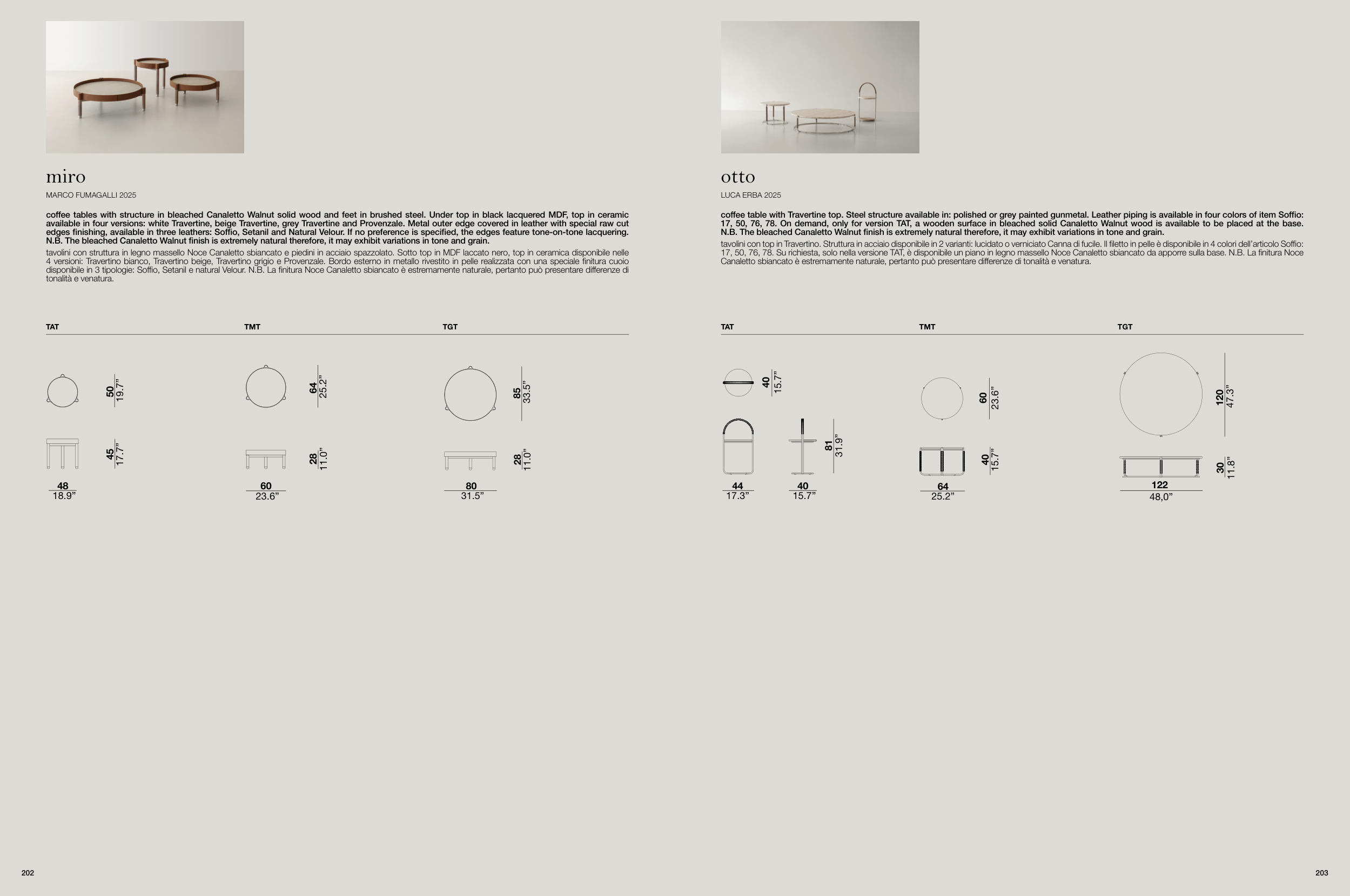 17, 50, 76, 78. On demand, only for version TAT, a wooden surface in bleached solid Canaletto Walnut wood is available to be placed at the base.
