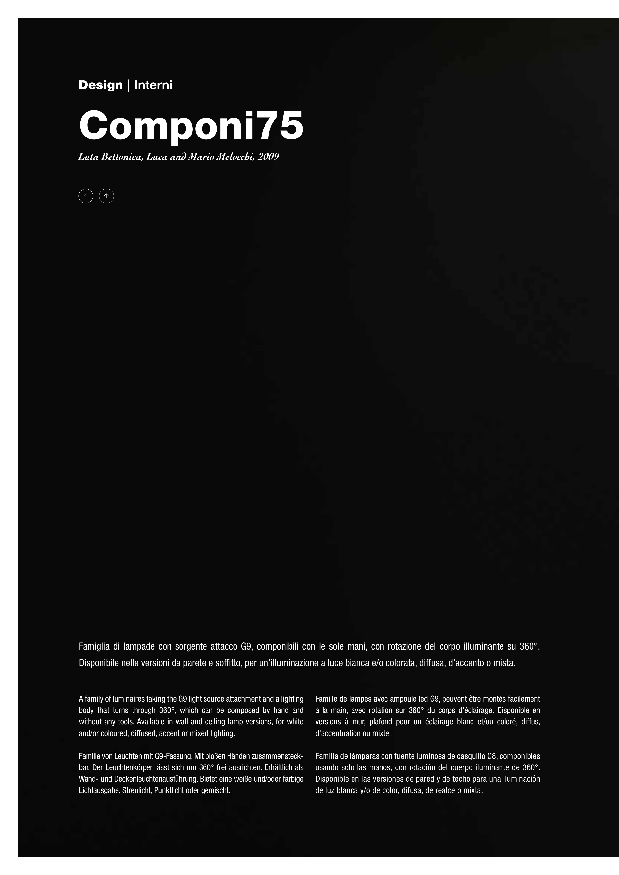 Famiglia di lampade con sorgente attacco G9, componibili con le sole mani, con rotazione del corpo illuminante su 360°.