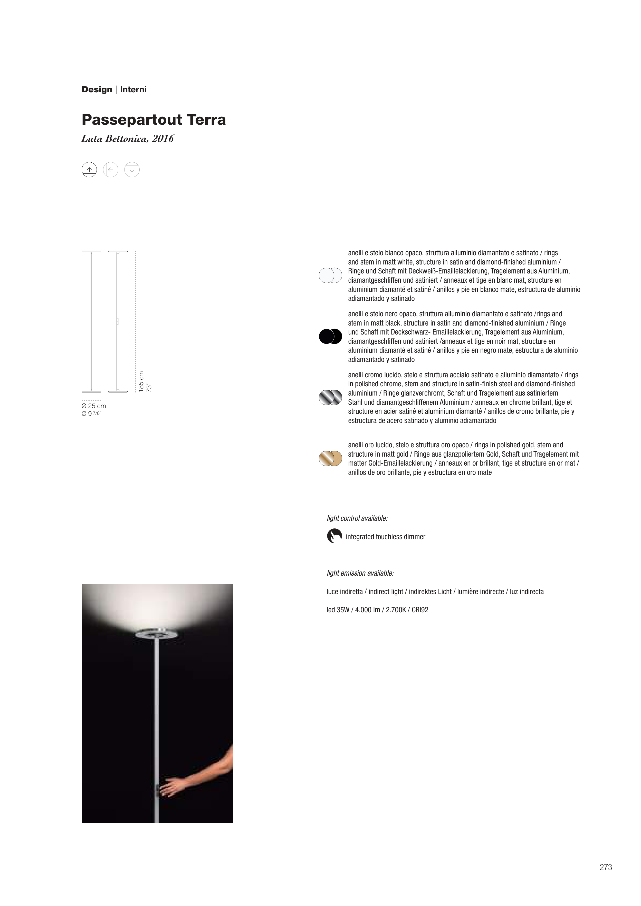and stem in matt white, structure in satin and diamond-finished aluminium /
