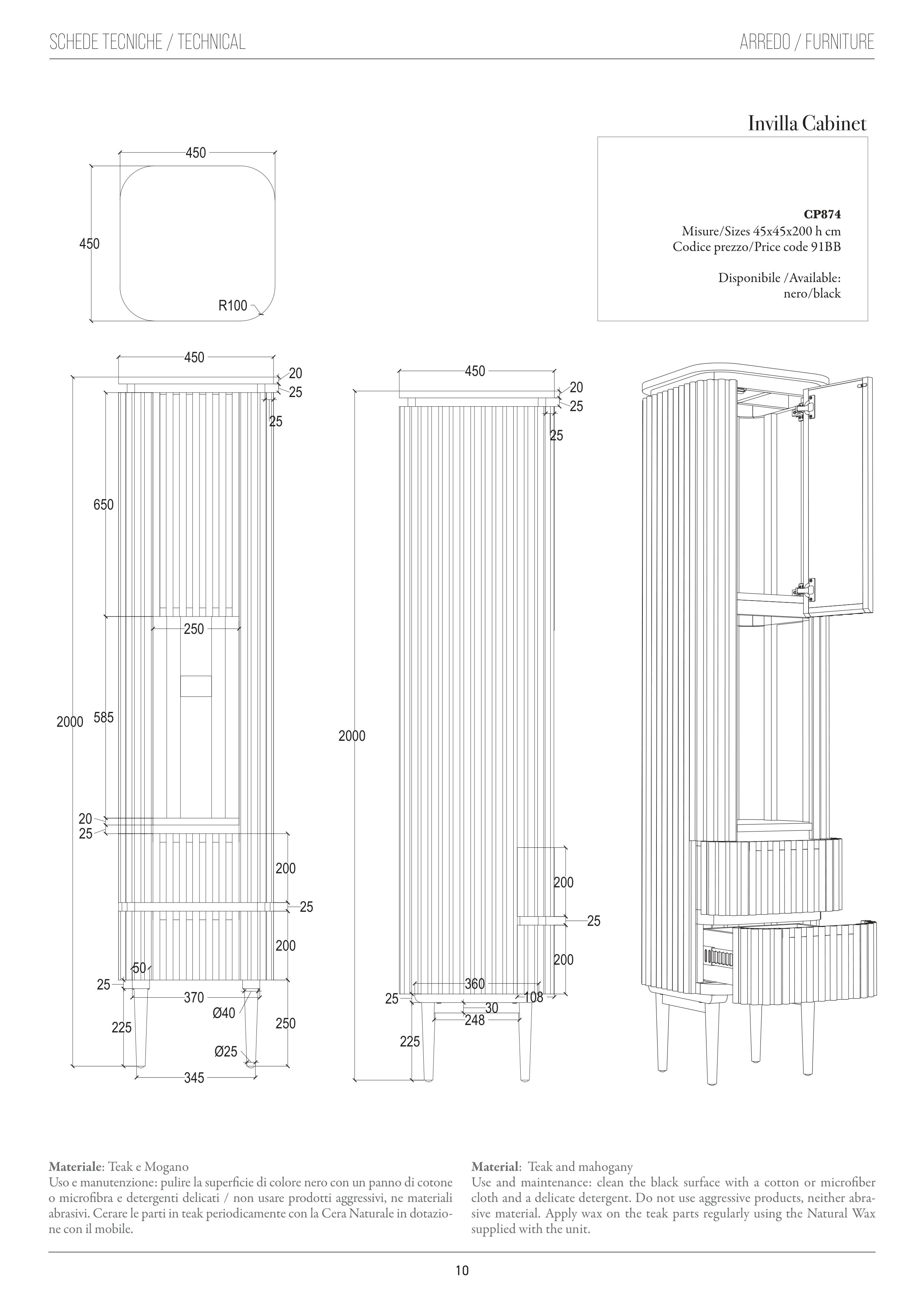 Misure/Sizes 45x45x200 h cm