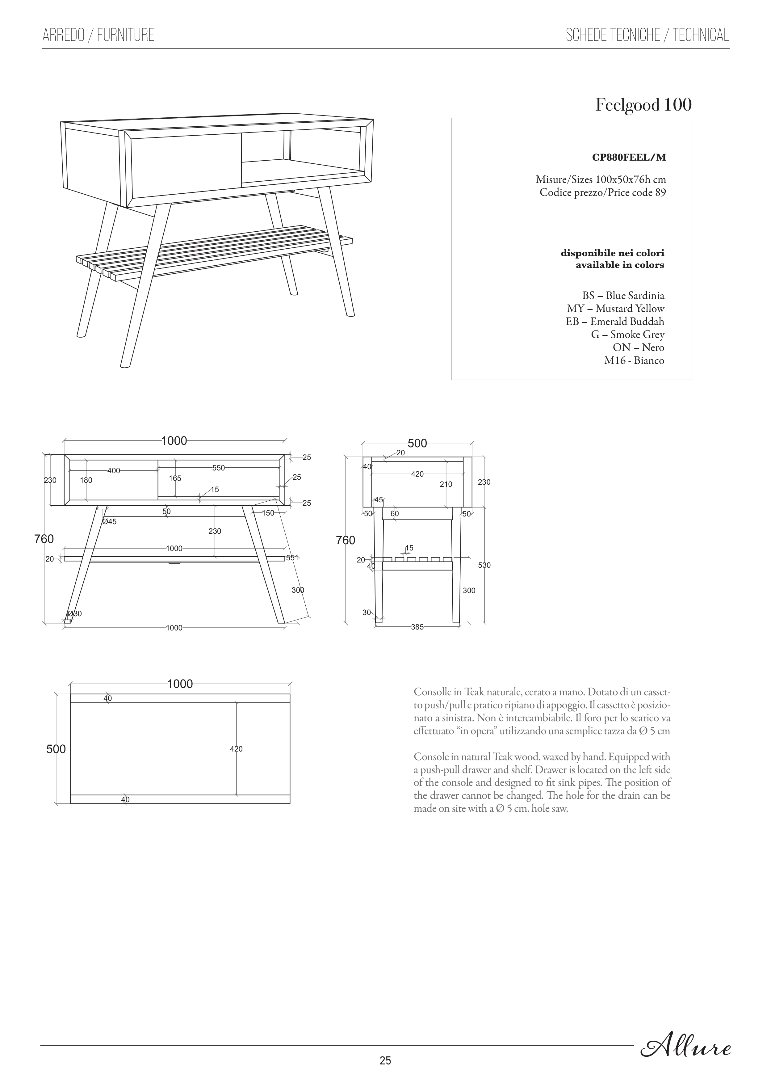 Misure/Sizes 100x50x76h cm