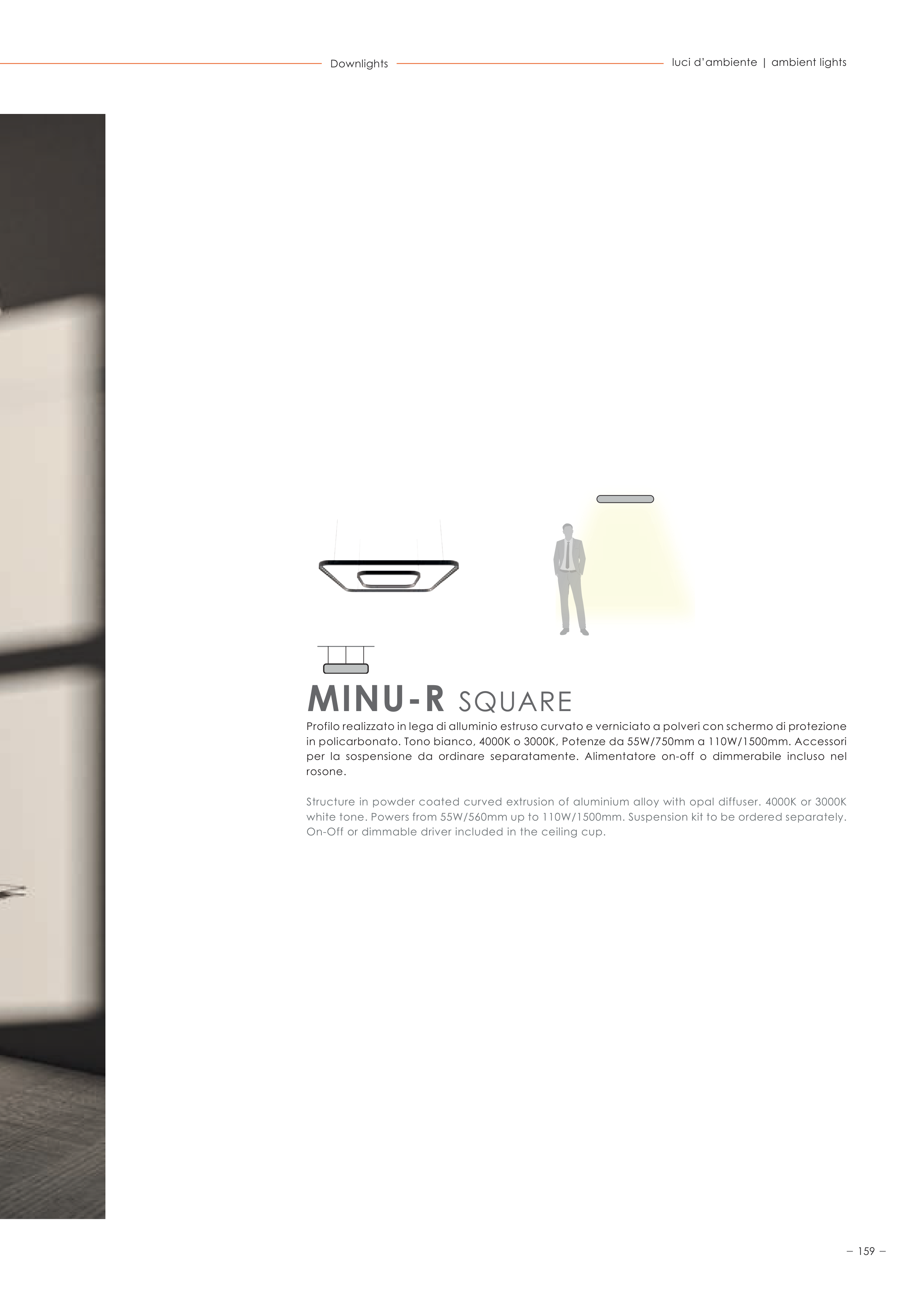 white tone. Powers from 55W/560mm up to 110W/1500mm. Suspension kit to be ordered separately.