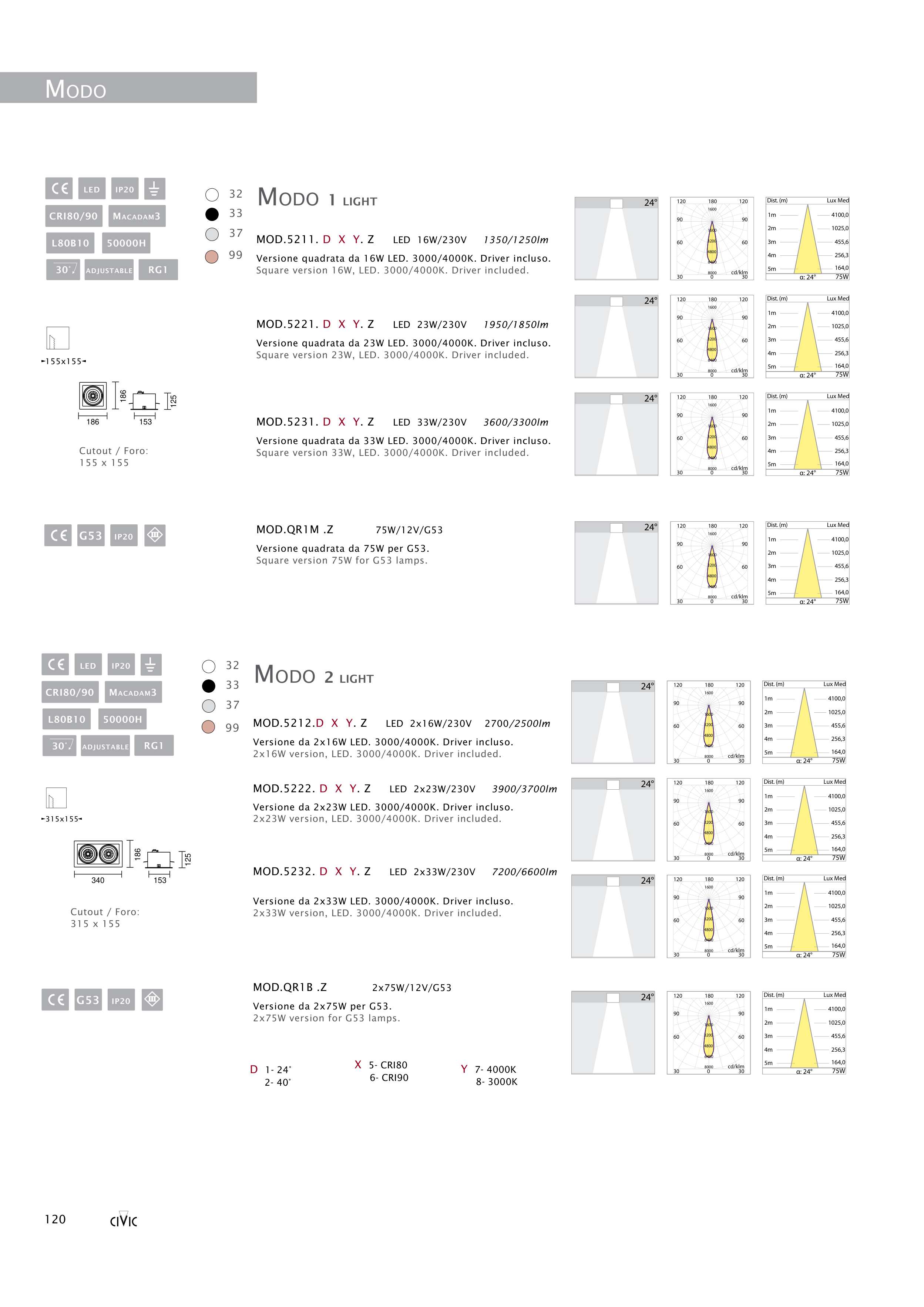 MOD.5231. D X Y. Z LED 33W/230V 3600/3300lm