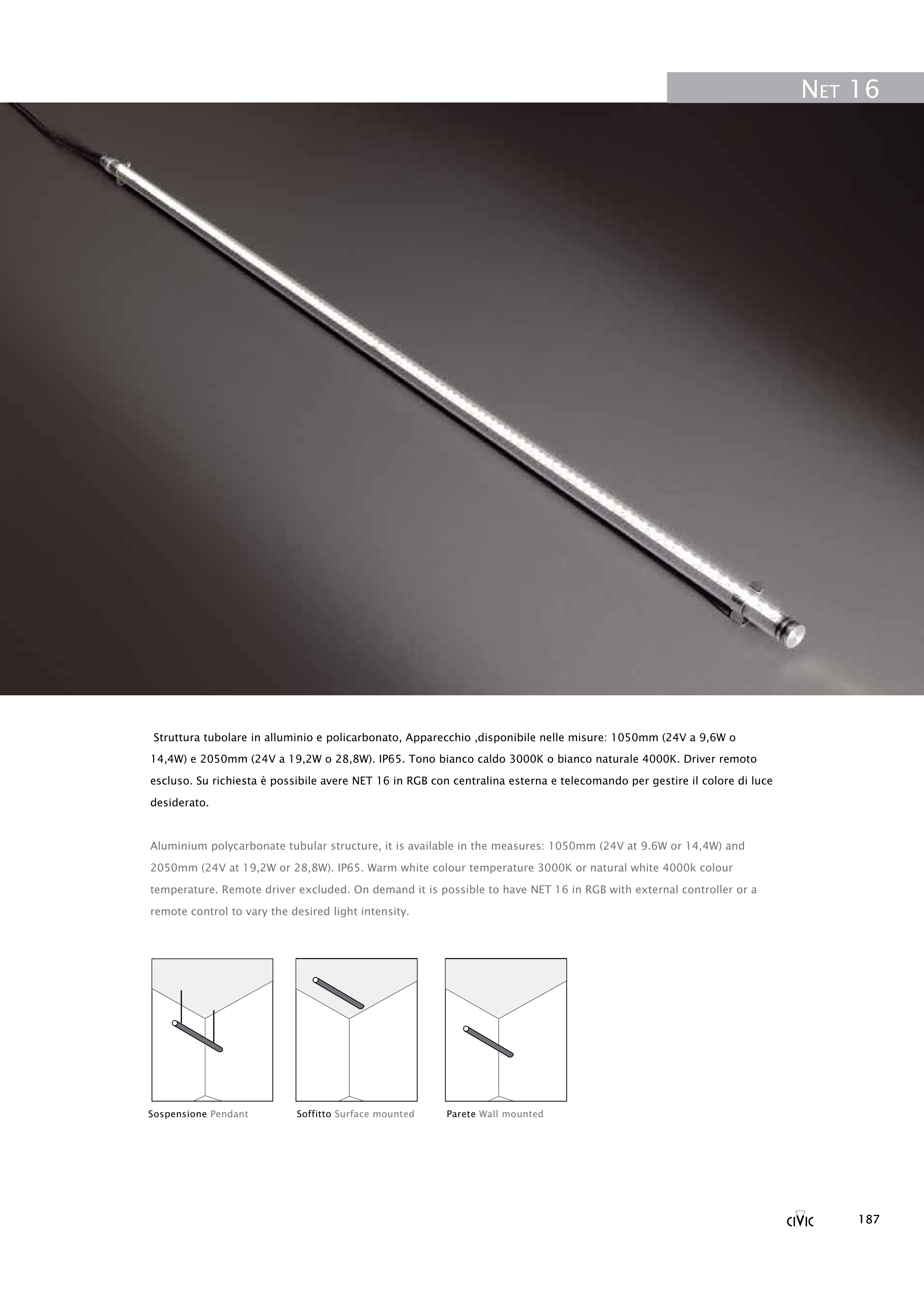temperature. Remote driver excluded. On demand it is possible to have NET 16 in RGB with external controller or a