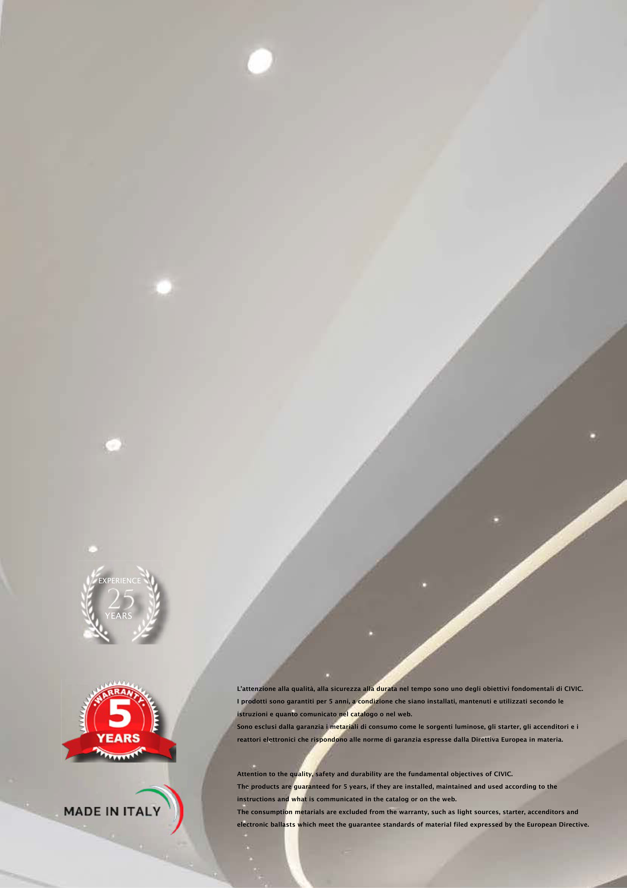 Sono esclusi dalla garanzia i metariali di consumo come le sorgenti luminose, gli starter, gli accenditori e i