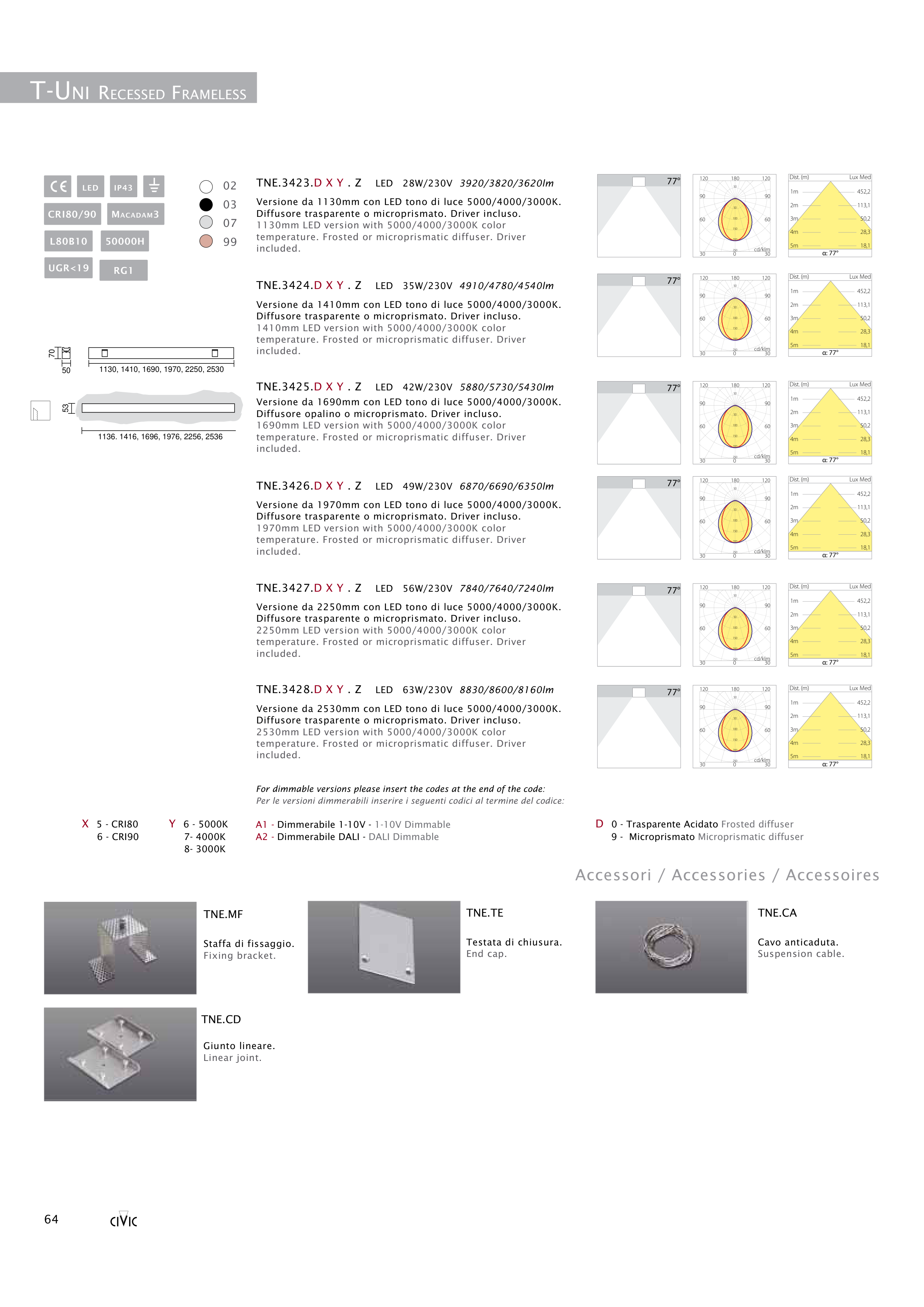 TNE.3428.D X Y . Z LED 63W/230V 8830/8600/8160lm