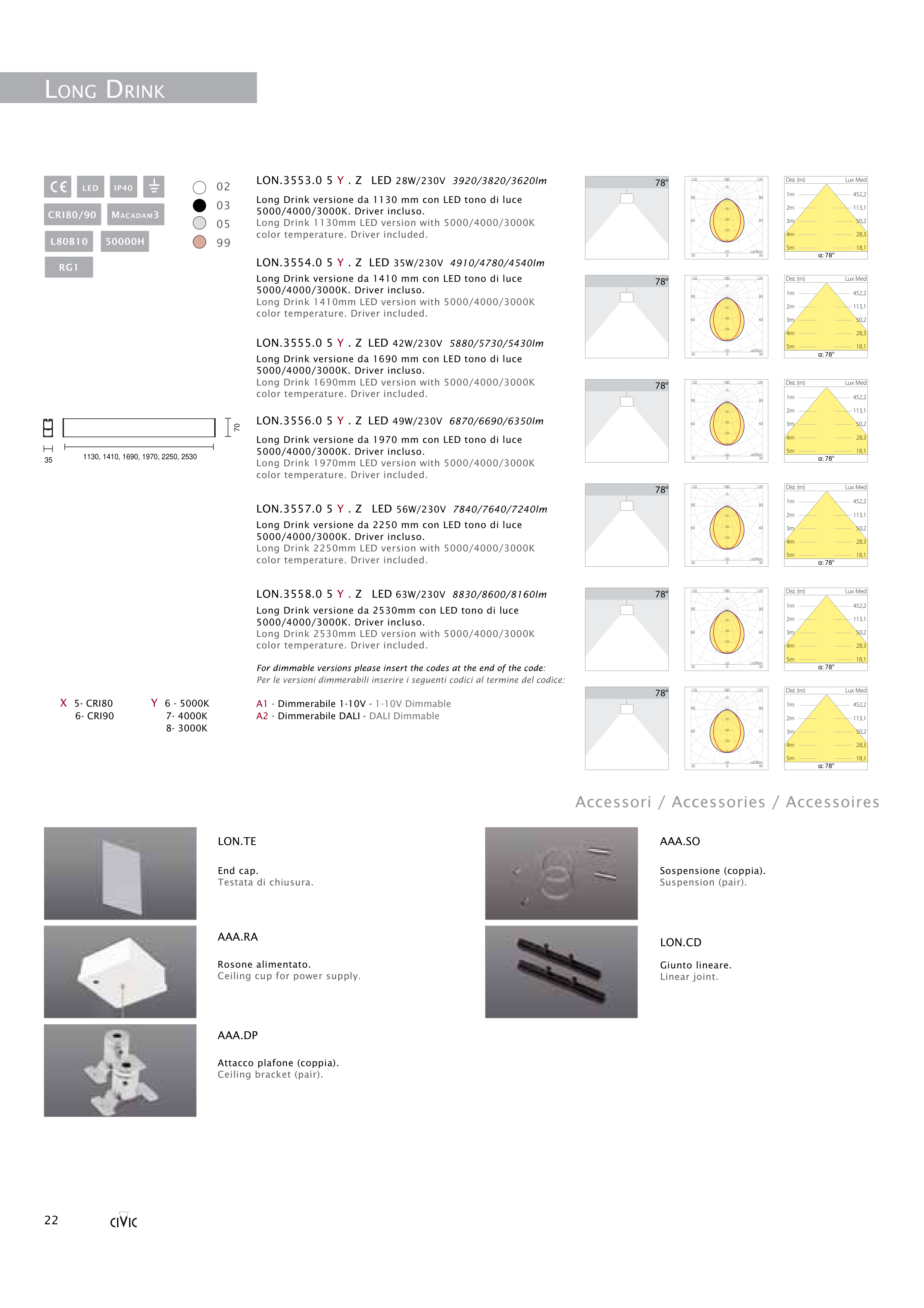 LON.3558.0 5 Y . Z LED 63W/230V 8830/8600/8160lm