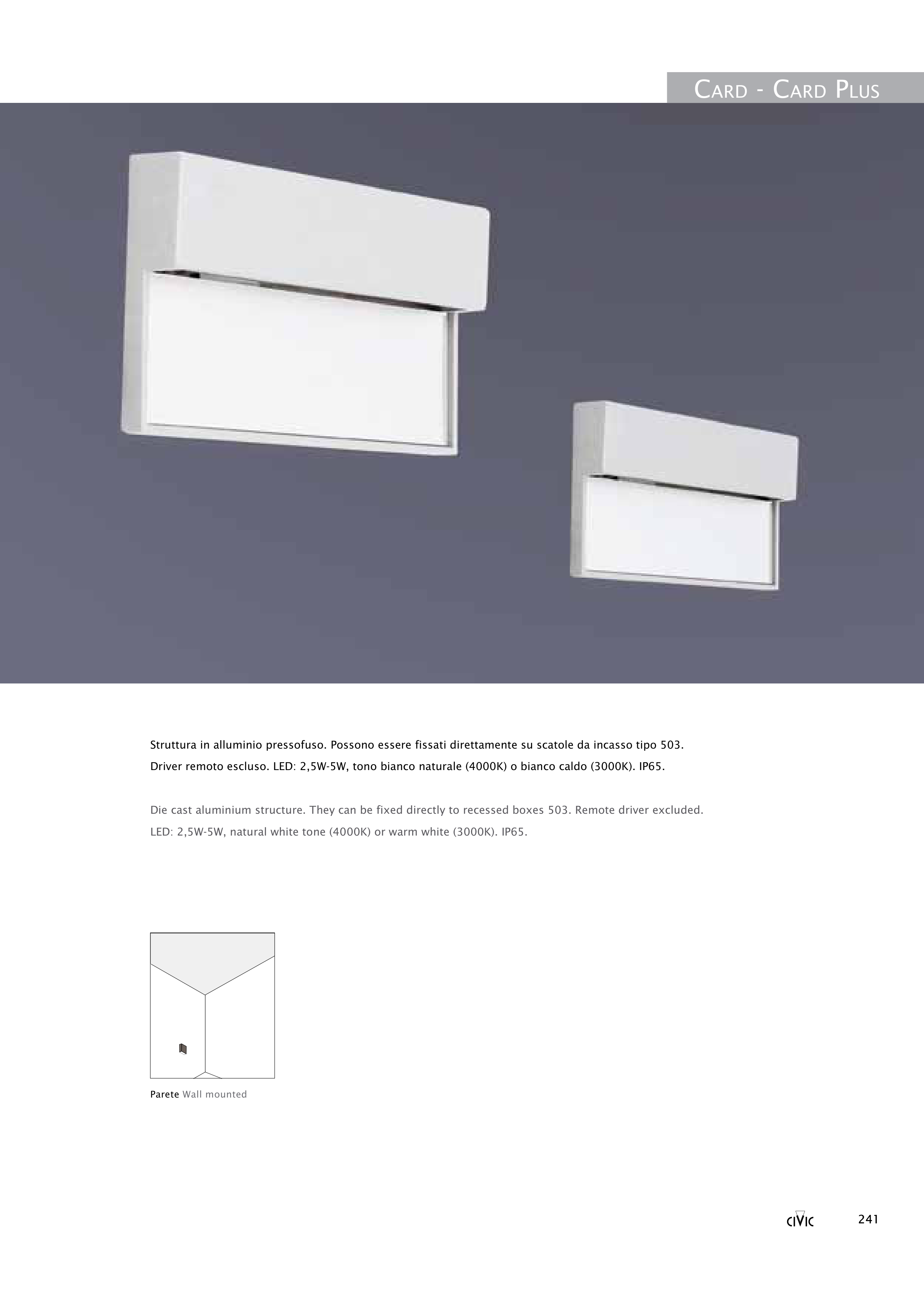 Die cast aluminium structure. They can be fixed directly to recessed boxes 503. Remote driver excluded.
