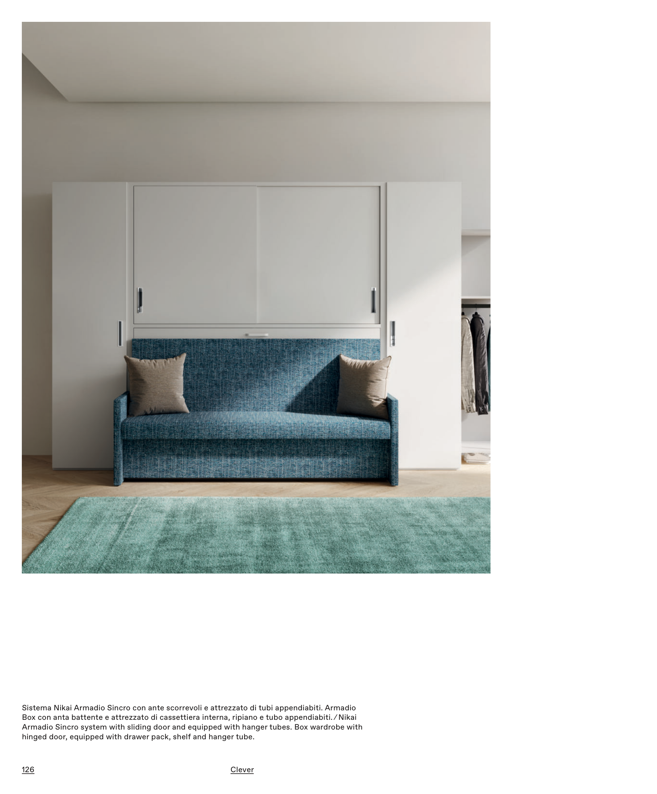 Sistema Nikai Armadio Sincro con ante scorrevoli e attrezzato di tubi appendiabiti. Armadio