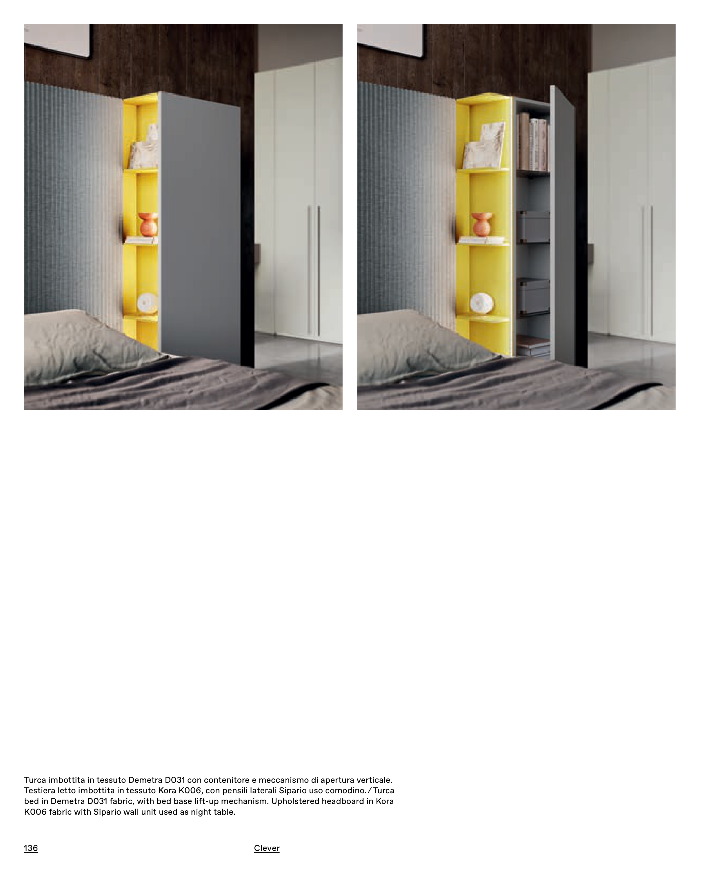 K006 fabric with Sipario wall unit used as night table.