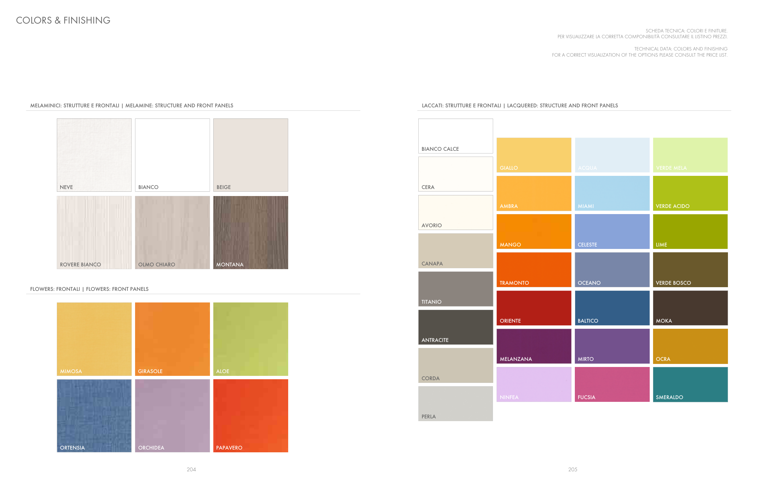 TECHNICAL DATA: COLORS AND FINISHING