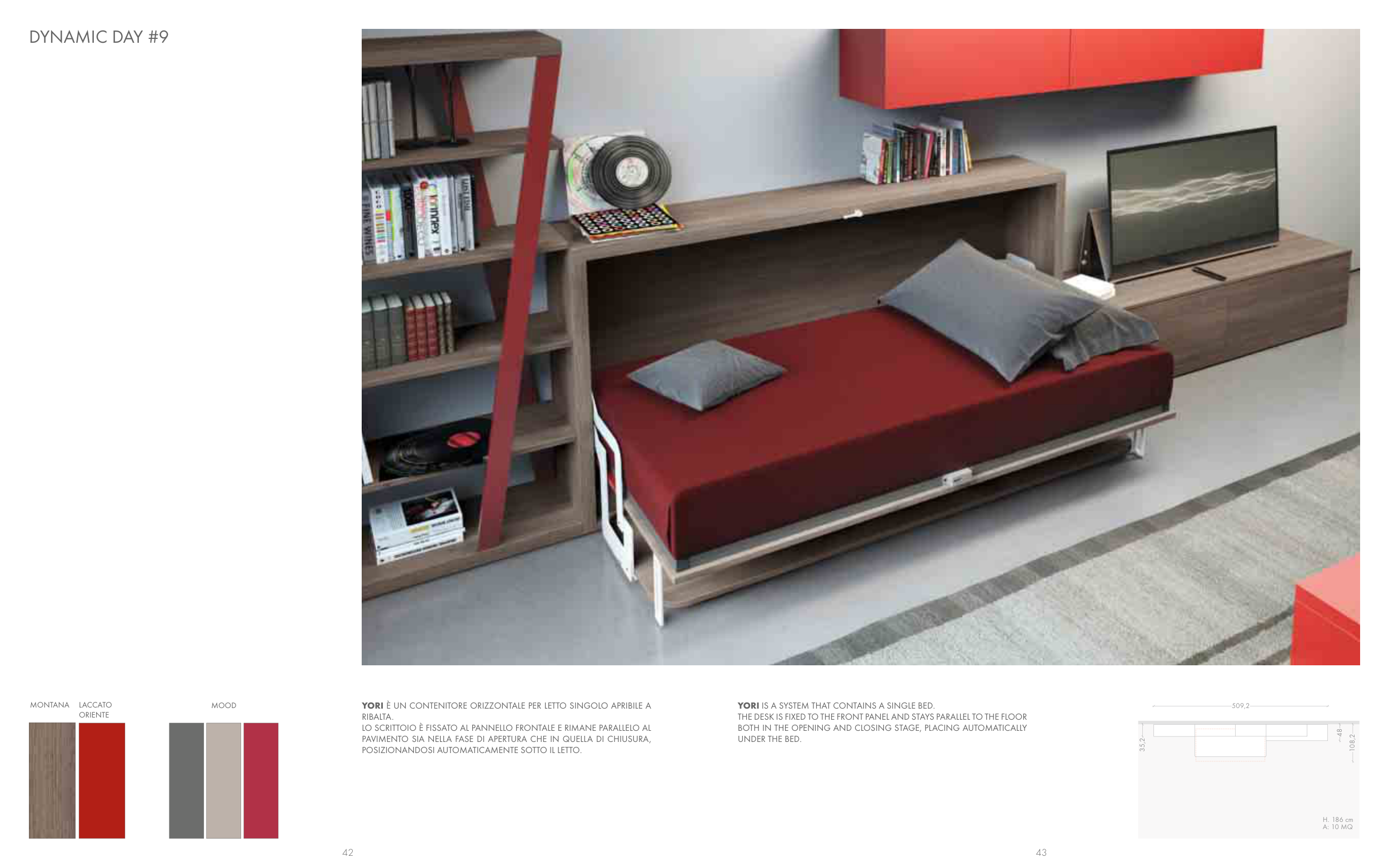 YORI È UN CONTENITORE ORIZZONTALE PER LETTO SINGOLO APRIBILE A