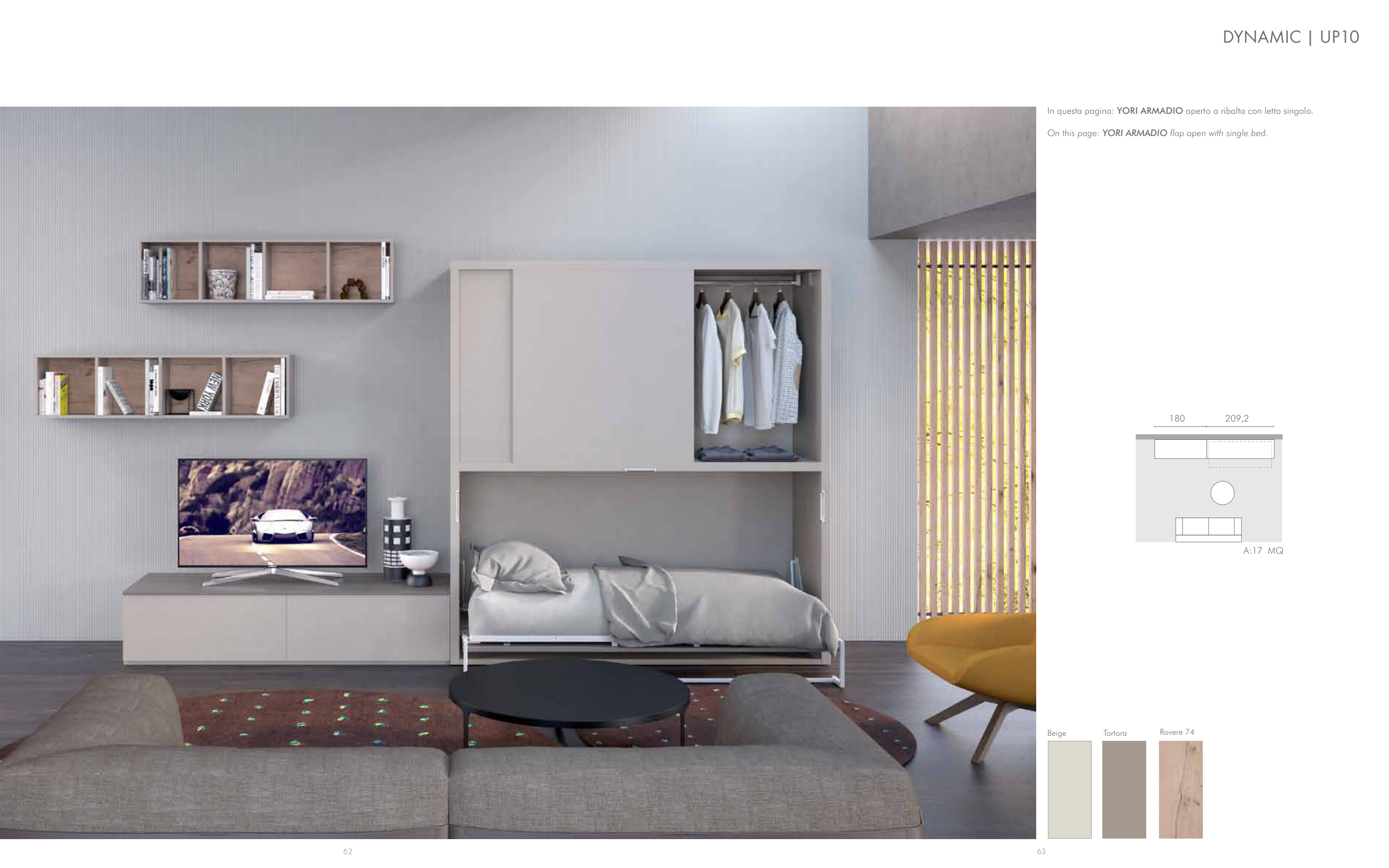 In questa pagina: YORI ARMADIO aperto a ribalta con letto singolo.