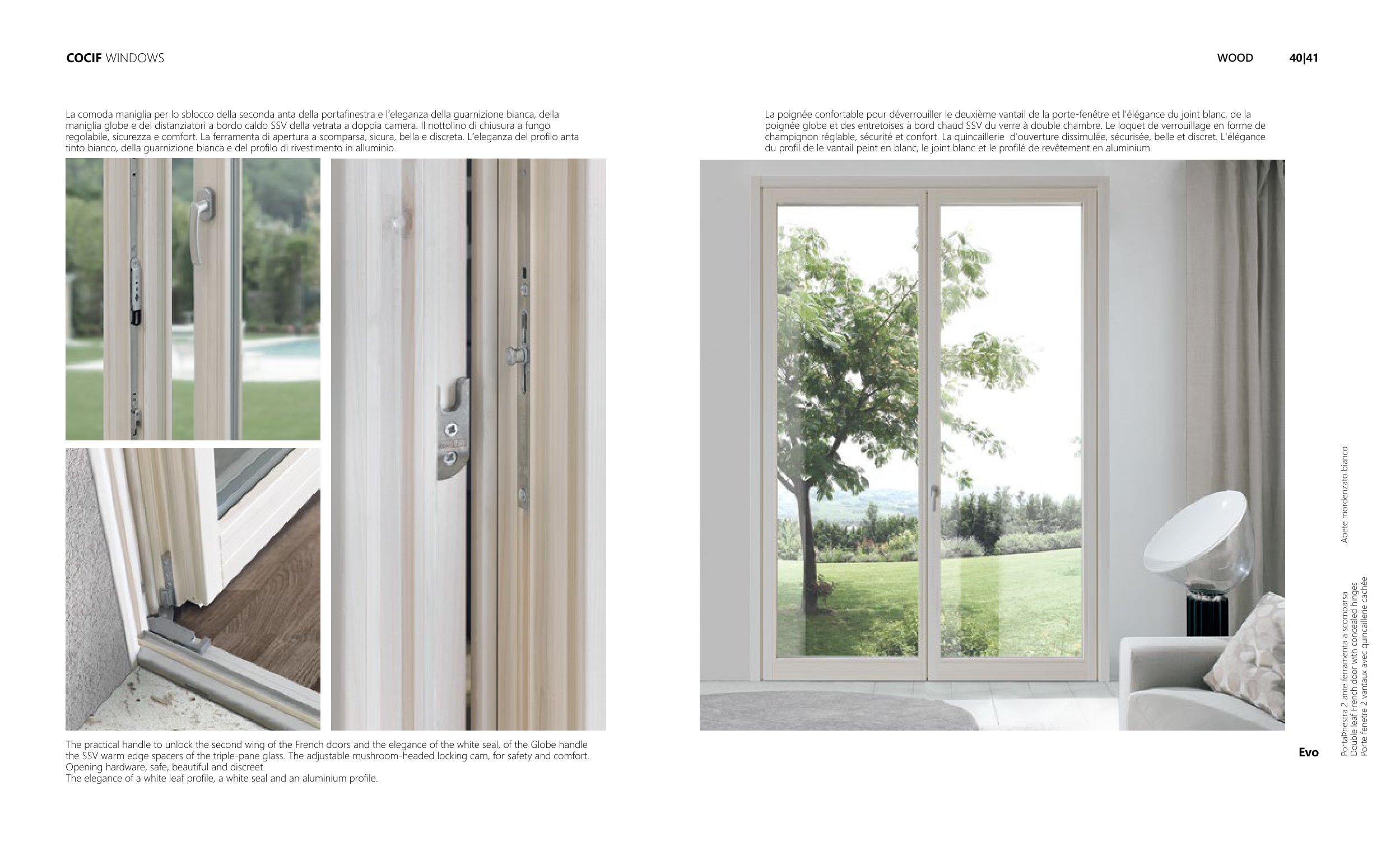The practical handle to unlock the second wing of the French doors and the elegance of the white seal, of the Globe handle