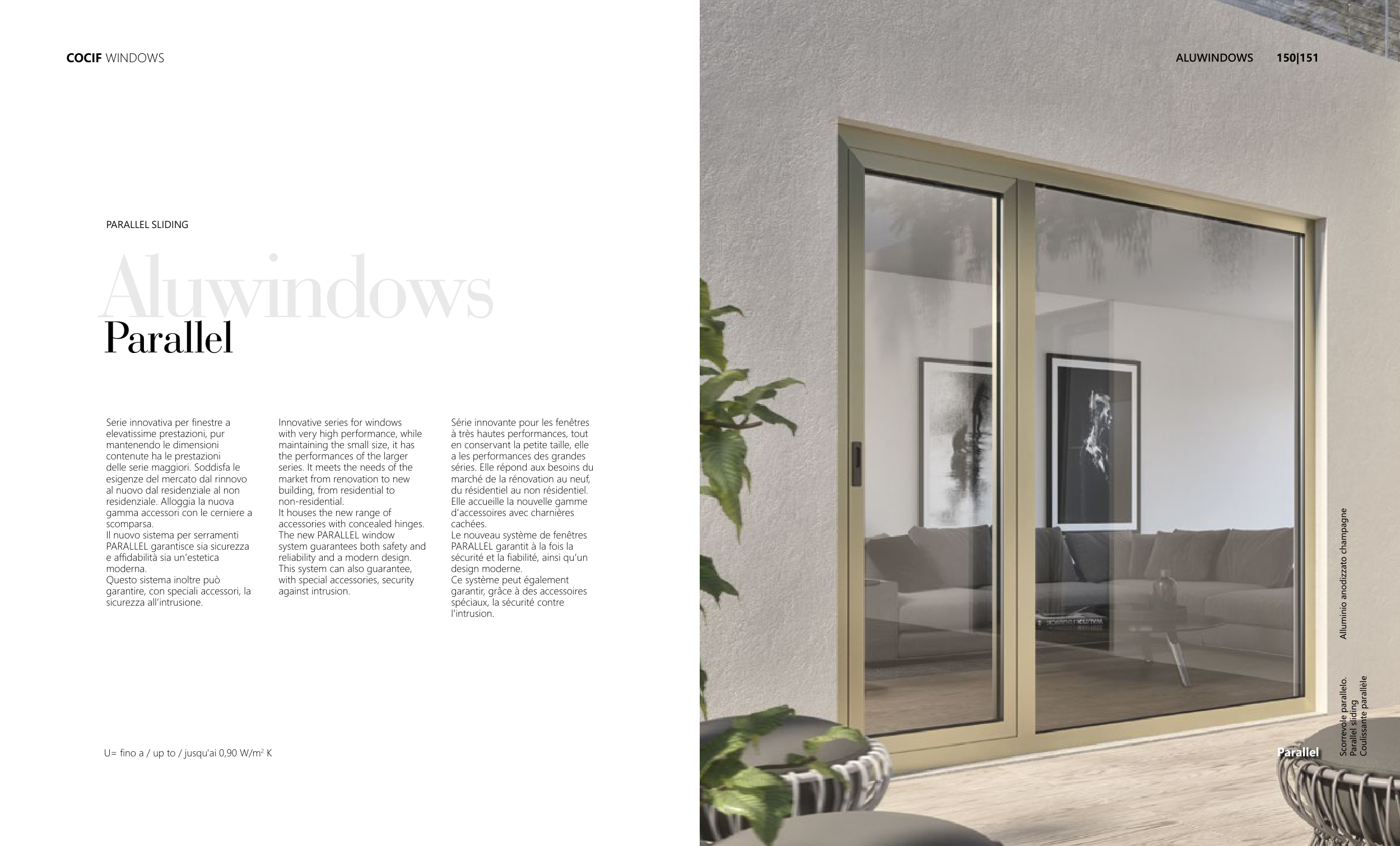 U= fino a / up to / jusqu'ai 0,90 W/m2 K