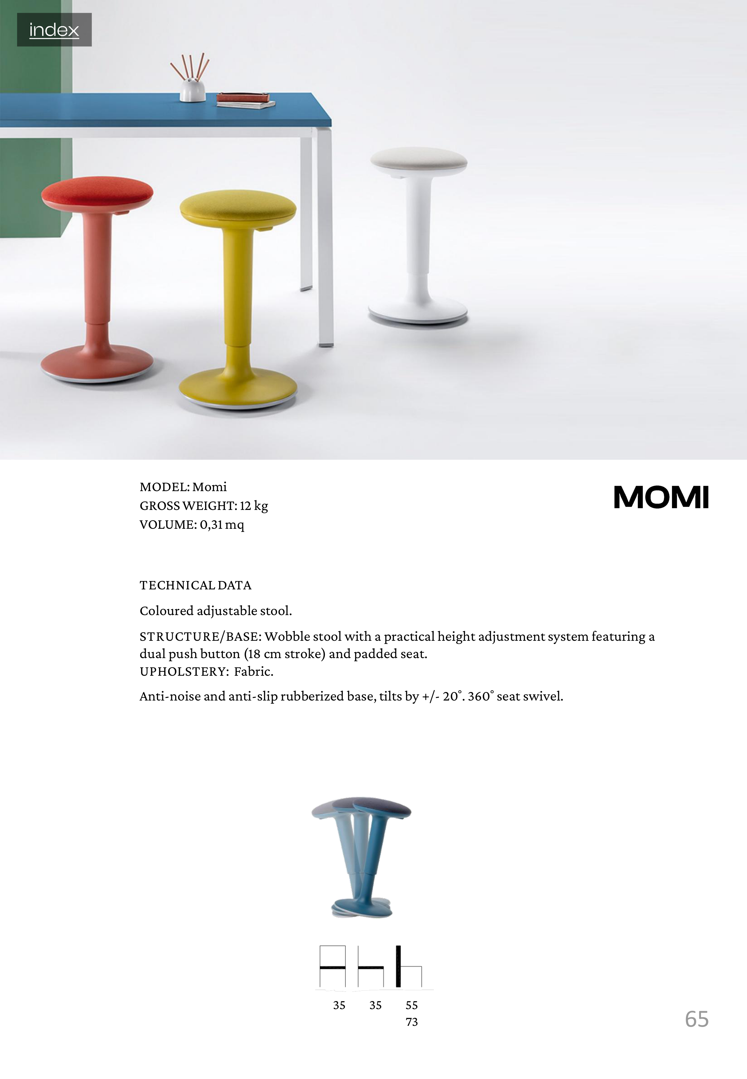 STRUCTURE/BASE: Wobble stool with a practical height adjustment system featuring a