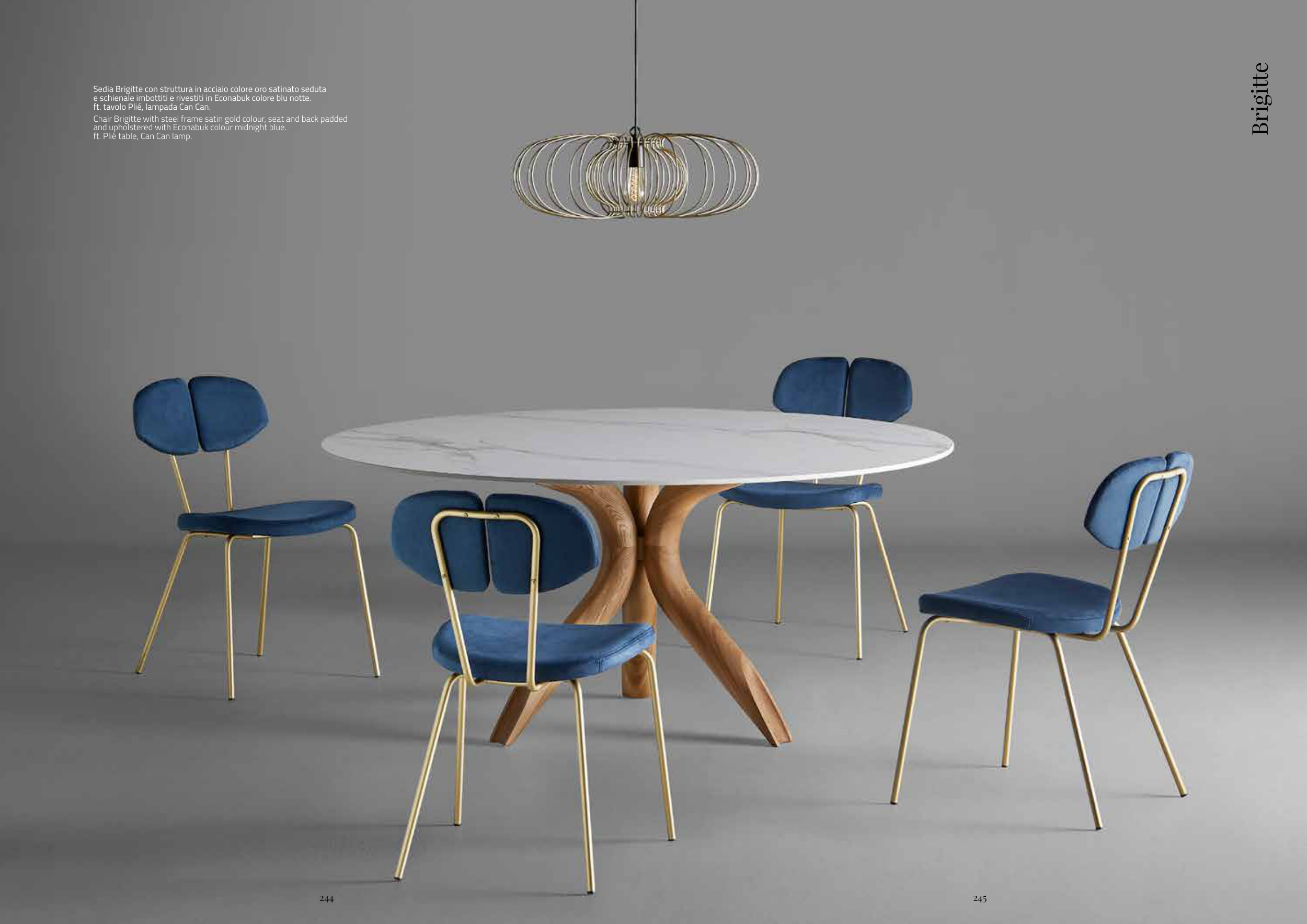 Sedia Brigitte con struttura in acciaio colore oro satinato seduta