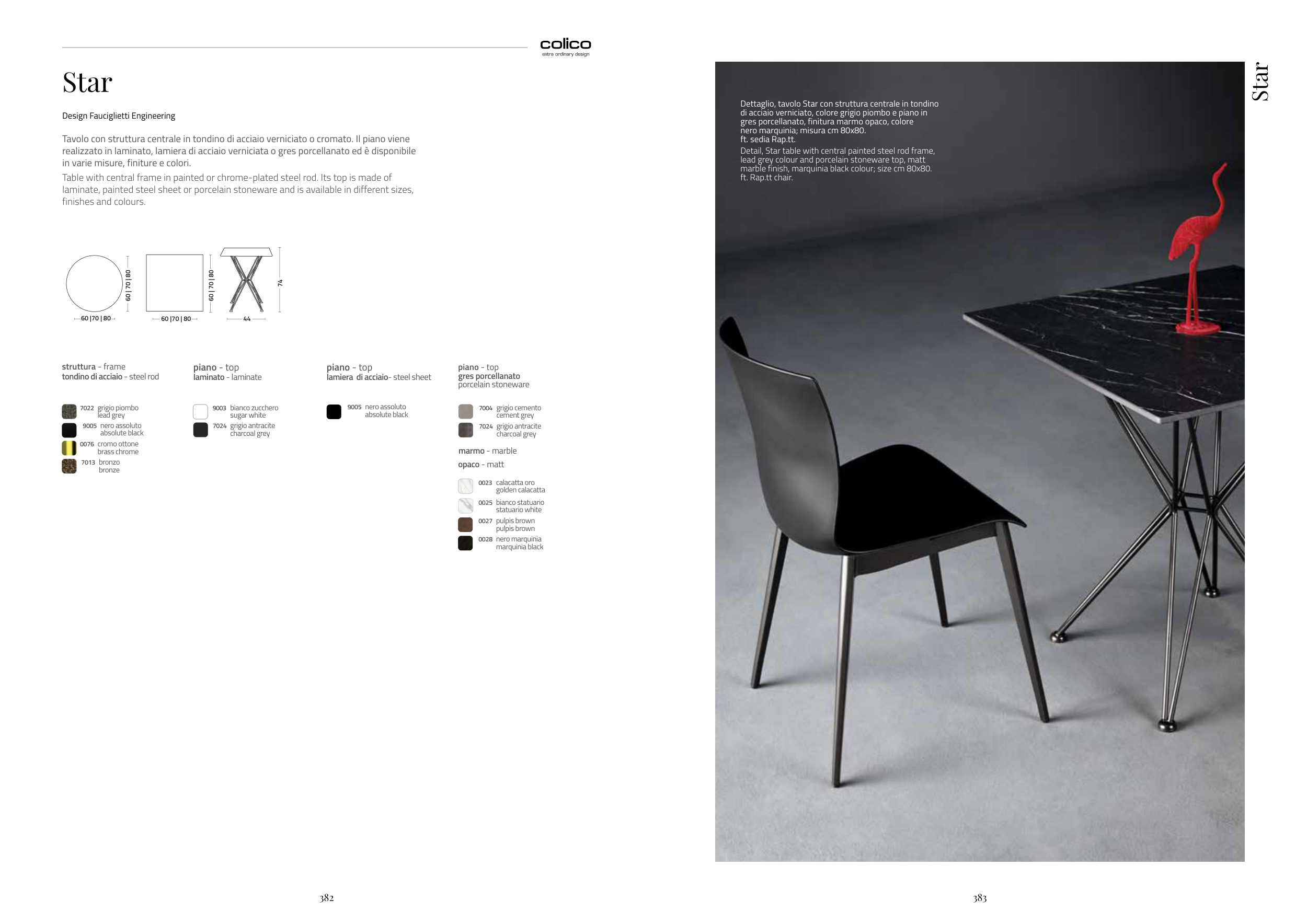 Dettaglio, tavolo Star con struttura centrale in tondino