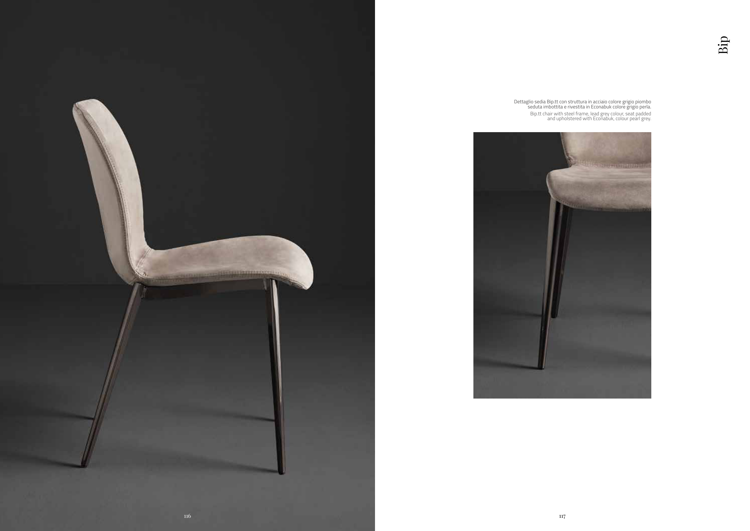 Dettaglio sedia Bip.tt con struttura in acciaio colore grigio piombo
