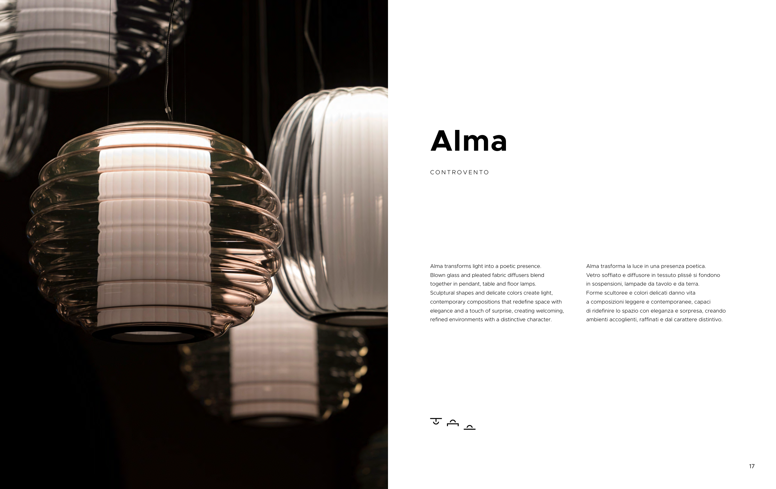 in sospensioni, lampade da tavolo e da terra.