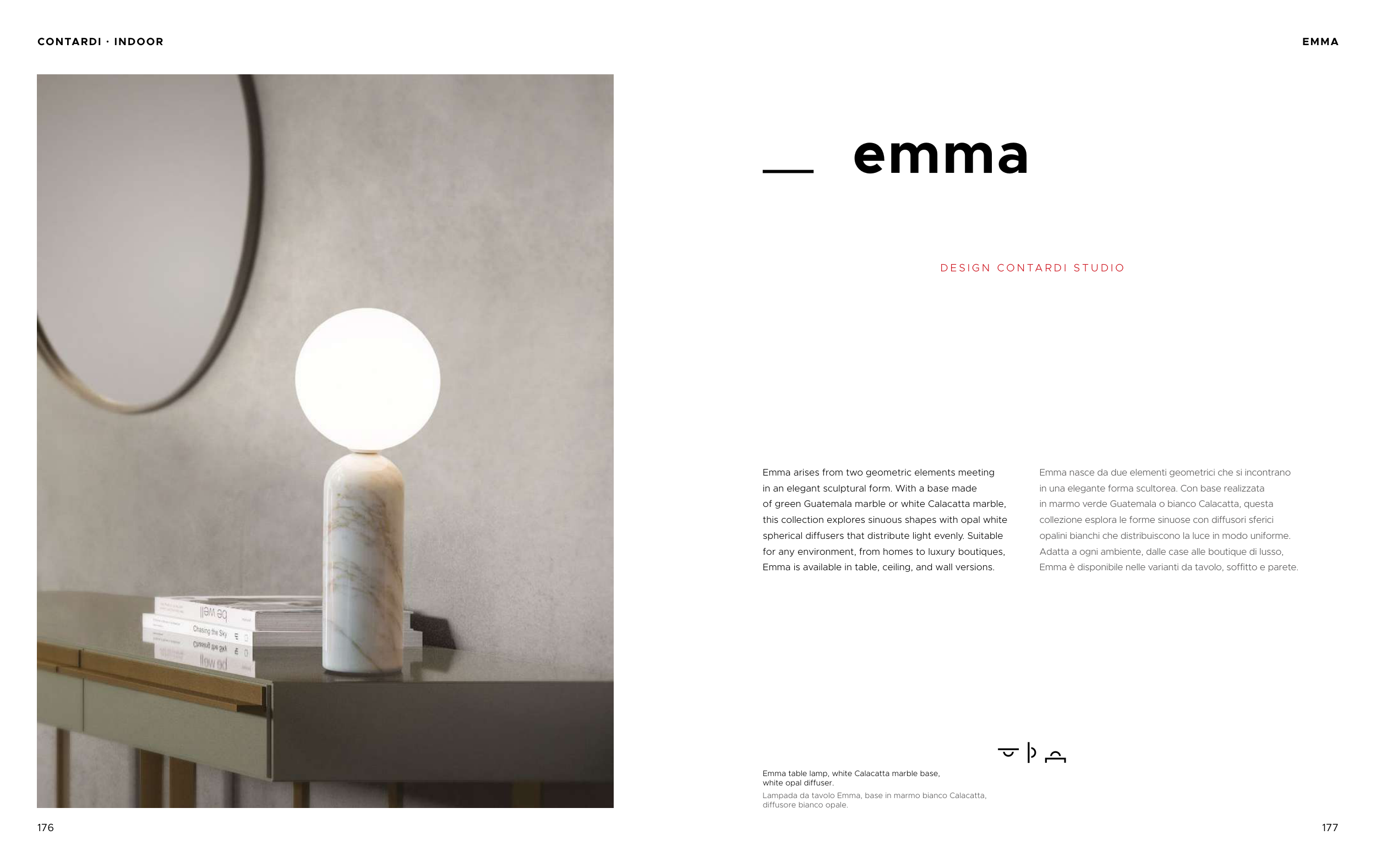 Emma è disponibile nelle varianti da tavolo, soffitto e parete.