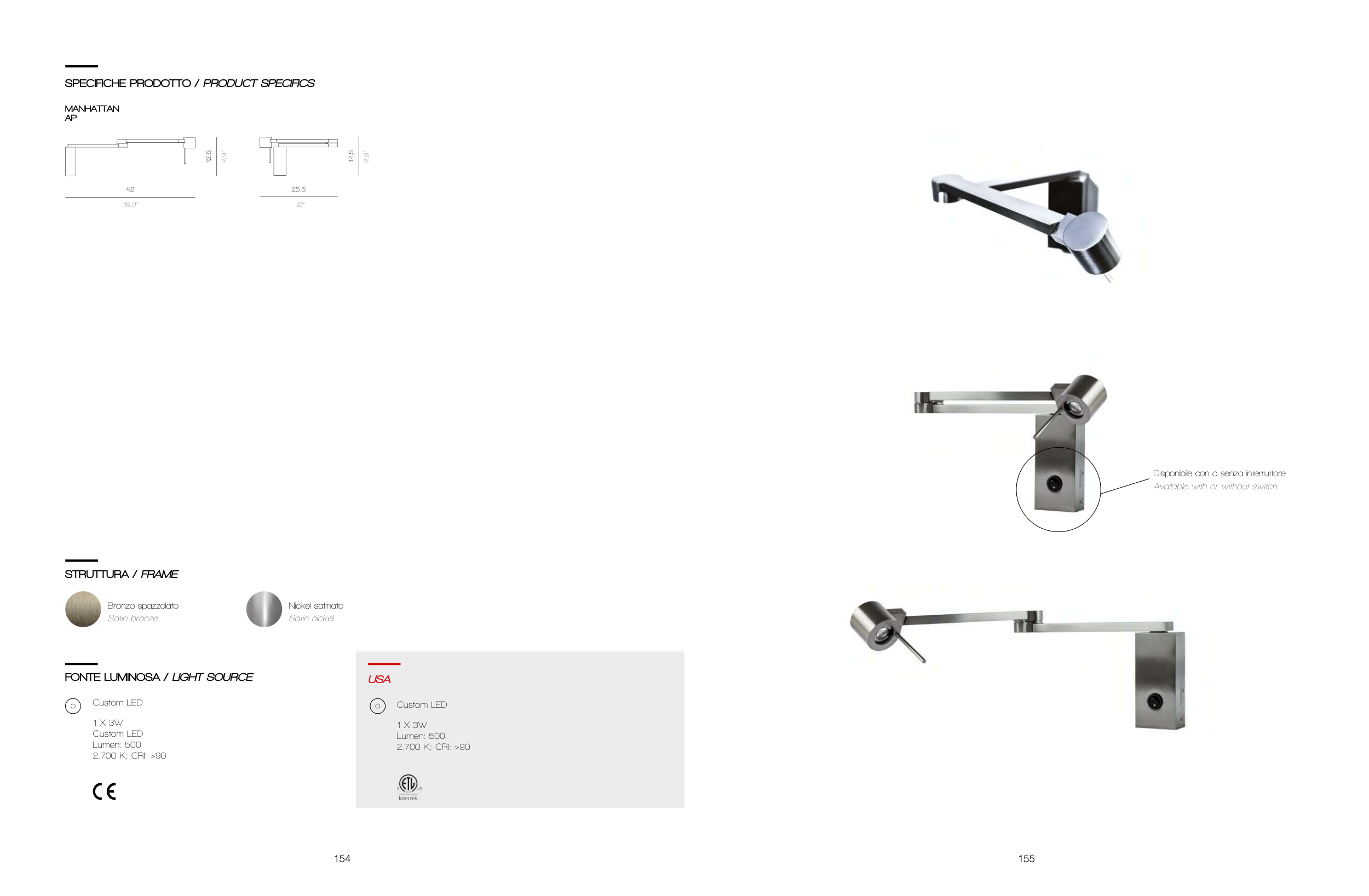 Disponibile con o senza interruttore