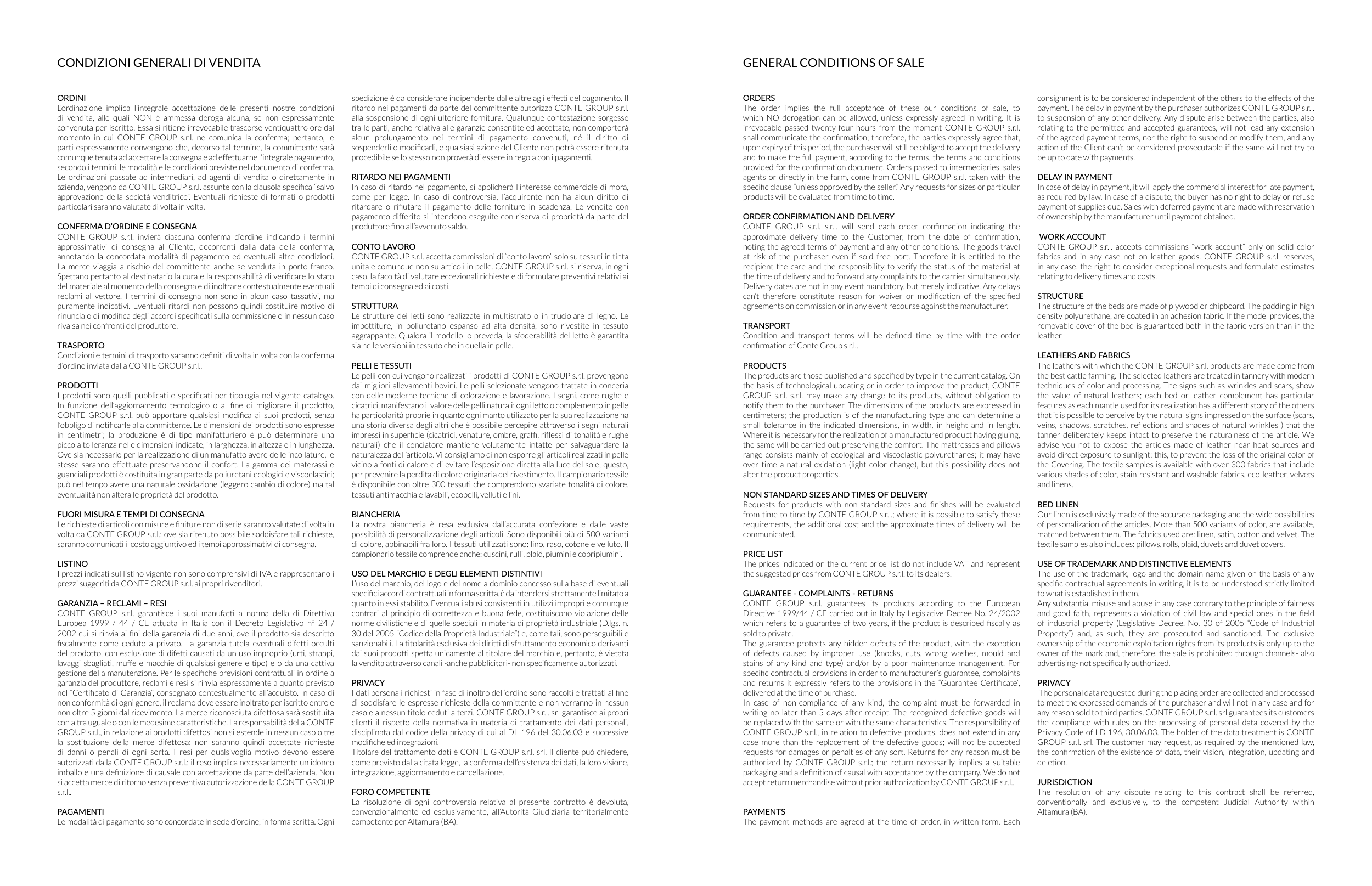 CONTE GROUP s.r.l. garantisce i suoi manufatti a norma della di Direttiva