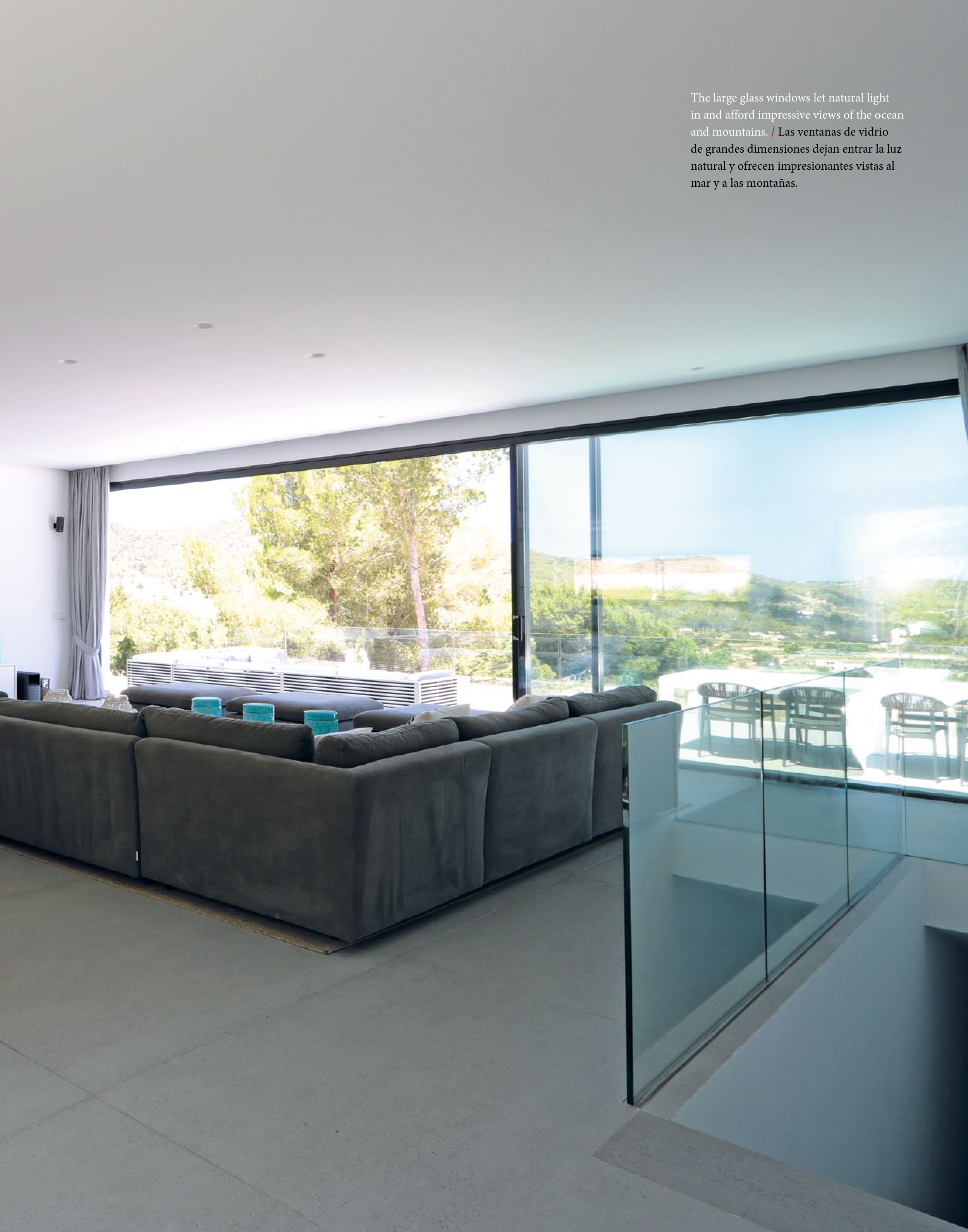 and mountains. / Las ventanas de vidrio