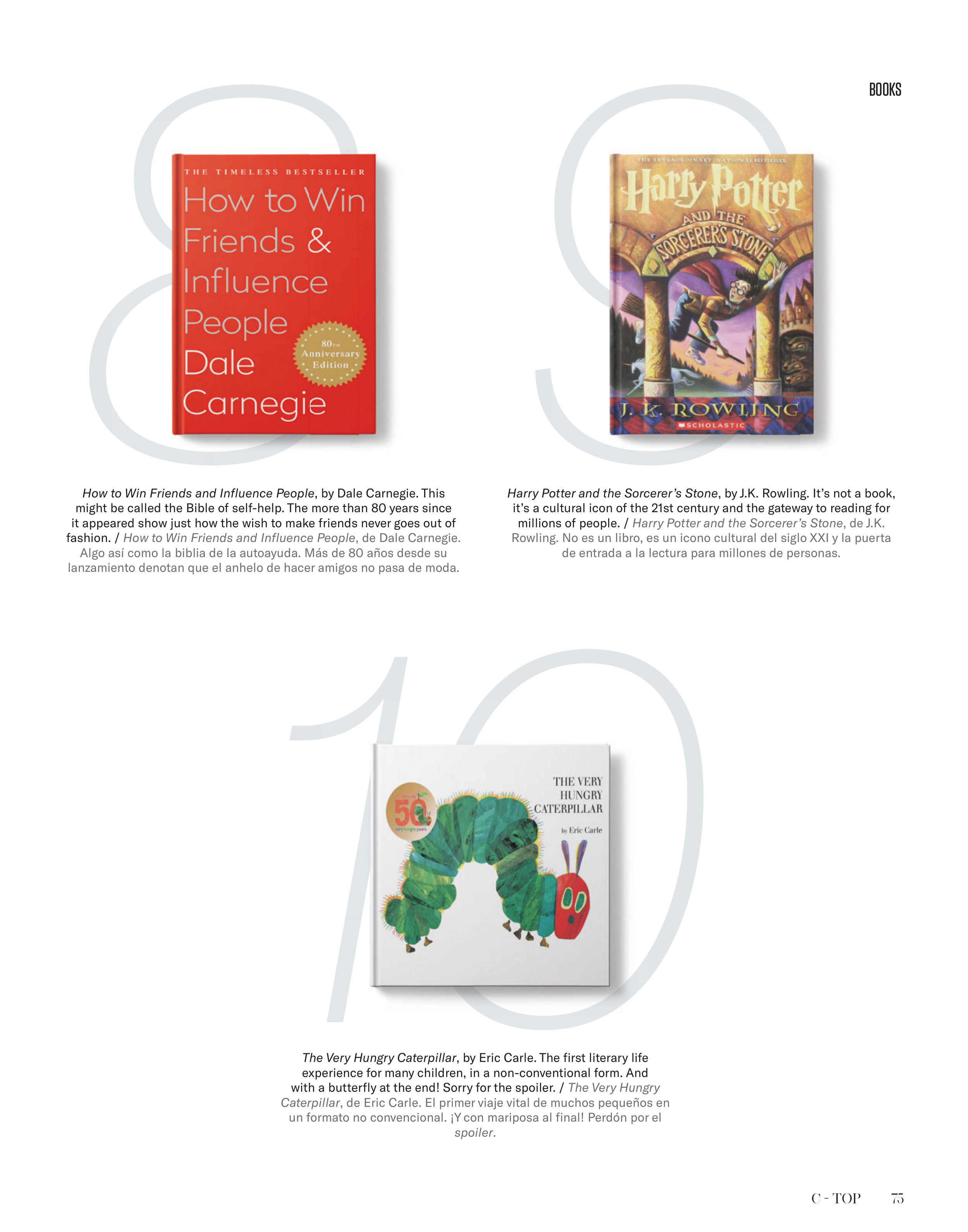 The Very Hungry Caterpillar, by Eric Carle. The fi rst literary life