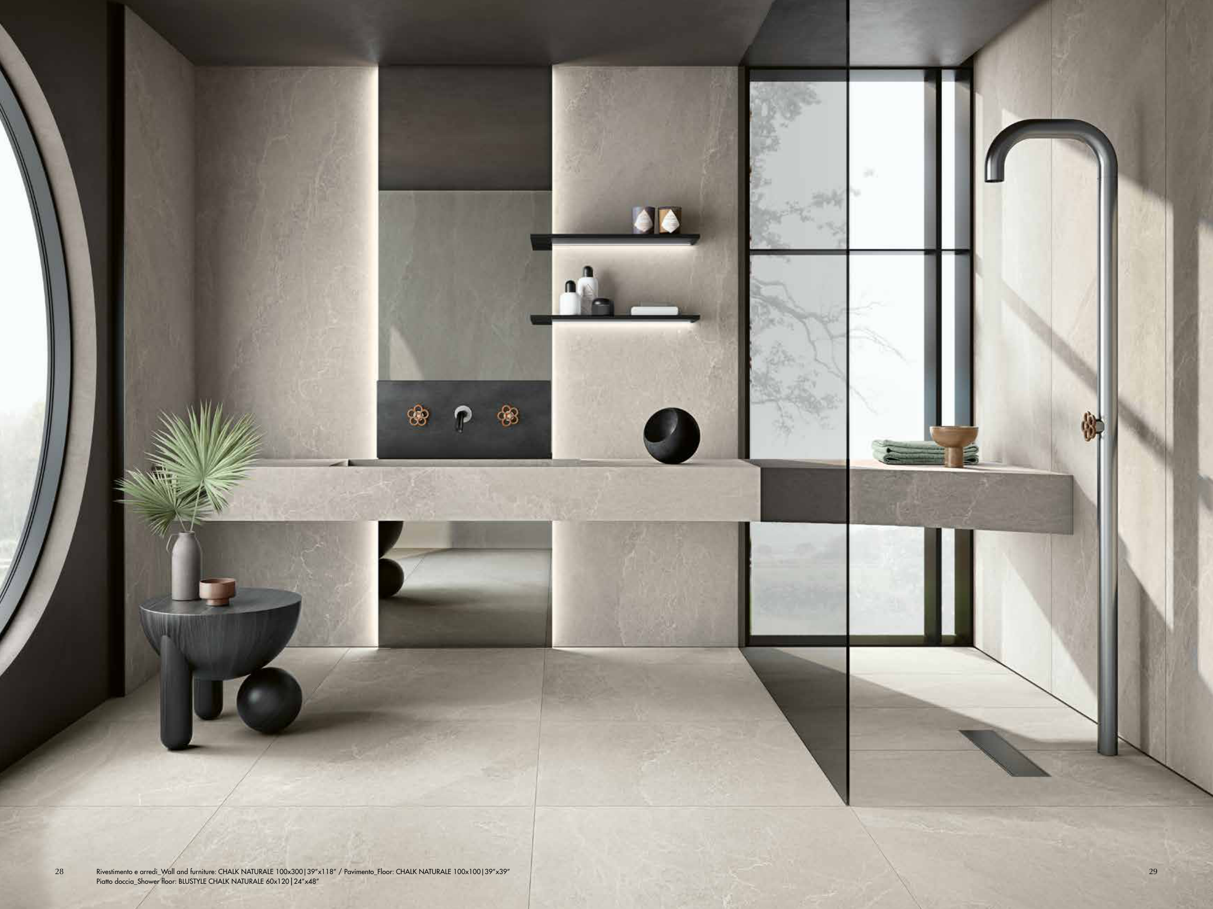 Rivestimento e arredi_Wall and furniture: CHALK NATURALE 100x300|39”x118” / Pavimento_Floor: CHALK NATURALE 100x100|39”x39”