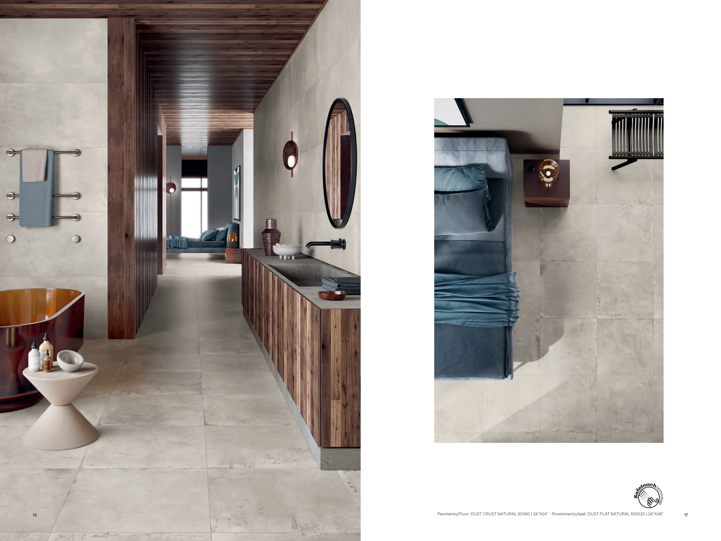 Pavimento/Floor: DUST CRUST NATURAL 60X60 | 24”X24” - Rivestimento/Wall: DUST FLAT NATURAL 60X120 | 24”X48”
